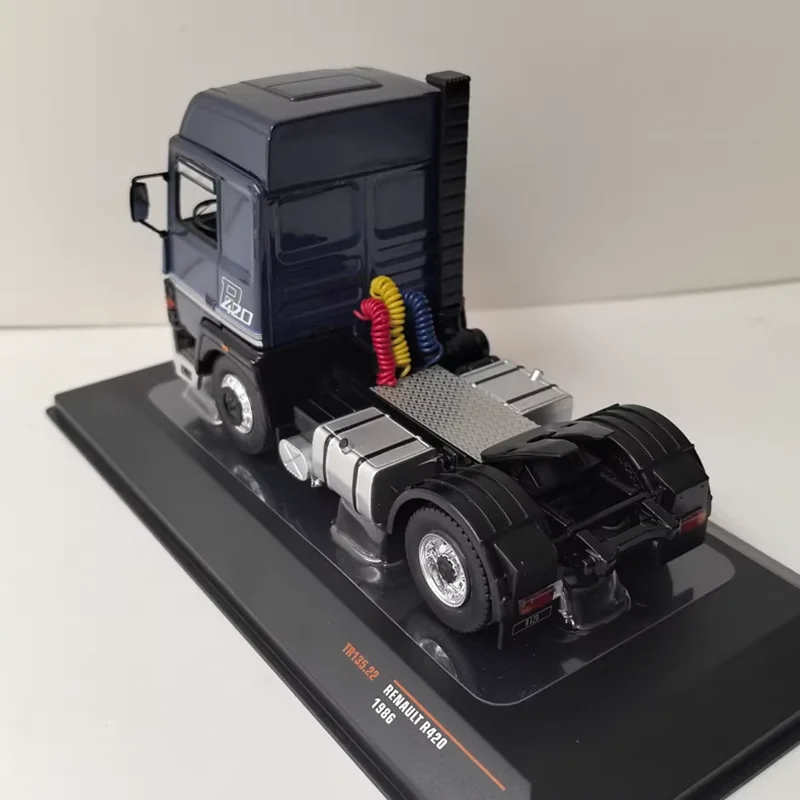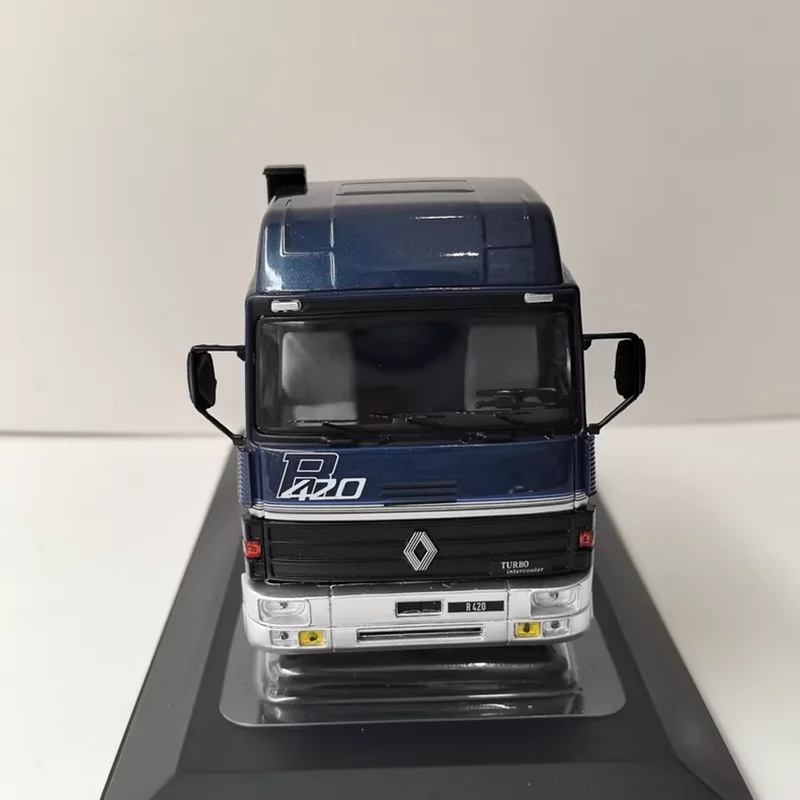 - 1:43 scale replica, perfectly proportioned to size, offering a realistic showcase of the original Renault R420 1986 trailer head with meticulous detailing.