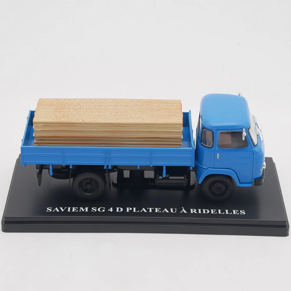Experience the charm of this meticulously crafted die-cast miniature of the Renault Saviem SG 4 flatbed truck. Painted in a vibrant, solid blue with a sleek, polished finish, this model captures the true essence of the classic vehicle. The flatbed features a natural beige color, textured to resemble realistic wood planks, perfectly conveying authenticity. The detailed white side mirrors, clear windshields, and finely molded grille add to its striking appearance. With its precise proportions and intricate details, this 1:43 scale replica makes an excellent display piece for collectors and enthusiasts. Its durable alloy, plastic, and rubber components ensure quality craftsmanship and long-lasting beauty. Enhance your collection today with this eye-catching miniature.