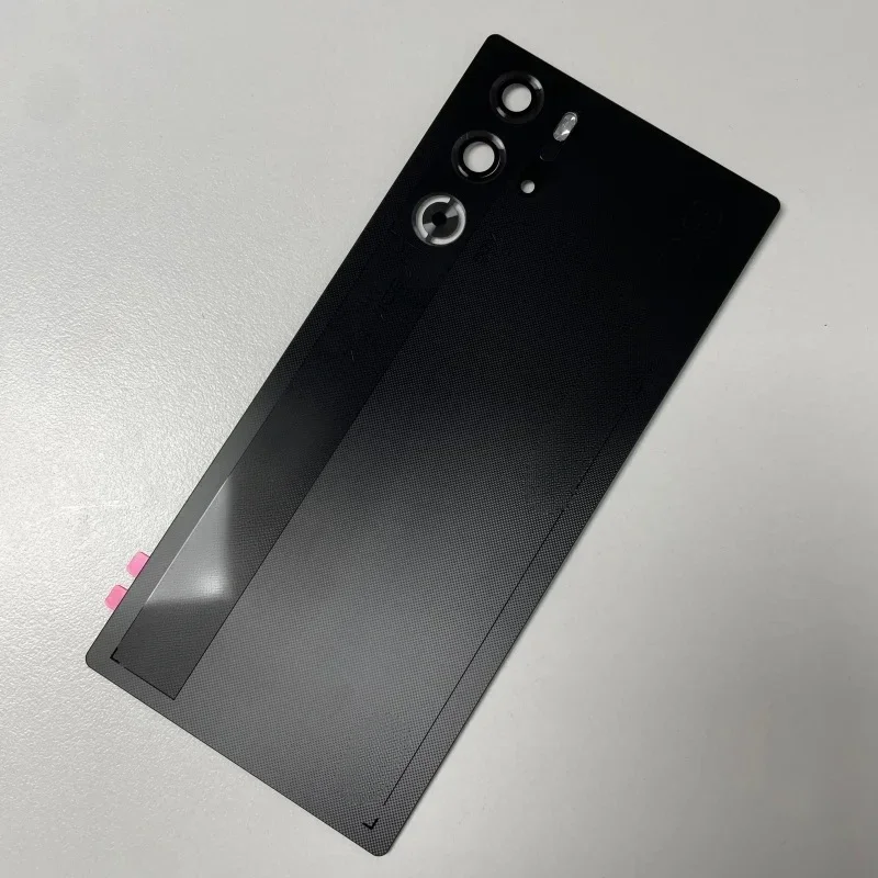 Experience a sophisticated upgrade with this high-quality replacement rear housing made for the ZTE Nubia Red Magic 9 Pro Plus 5G. Crafted from durable glass, it features a sleek matte black finish that exudes modern elegance. Designed to seamlessly fit the device’s 6.8-inch display, this housing offers a precise and stylish solution for replacing damaged or worn back covers. The subtle textured surface helps resist fingerprints and smudges, keeping your device looking pristine. The layout includes carefully cut circular and oblong openings for cameras and sensors, with a raised component that likely serves as a fingerprint scanner or protective cover. Its minimalist yet functional design ensures your phone retains its premium look and feel.