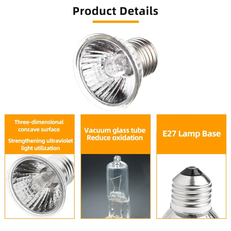 - Includes a high-quality vacuum glass tube to prevent stroboscopic effects and radiation, ensuring safe, reliable UVB and UVA output.