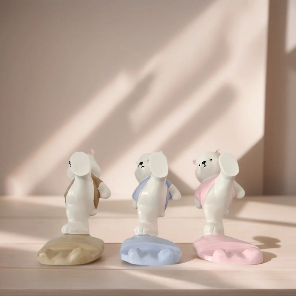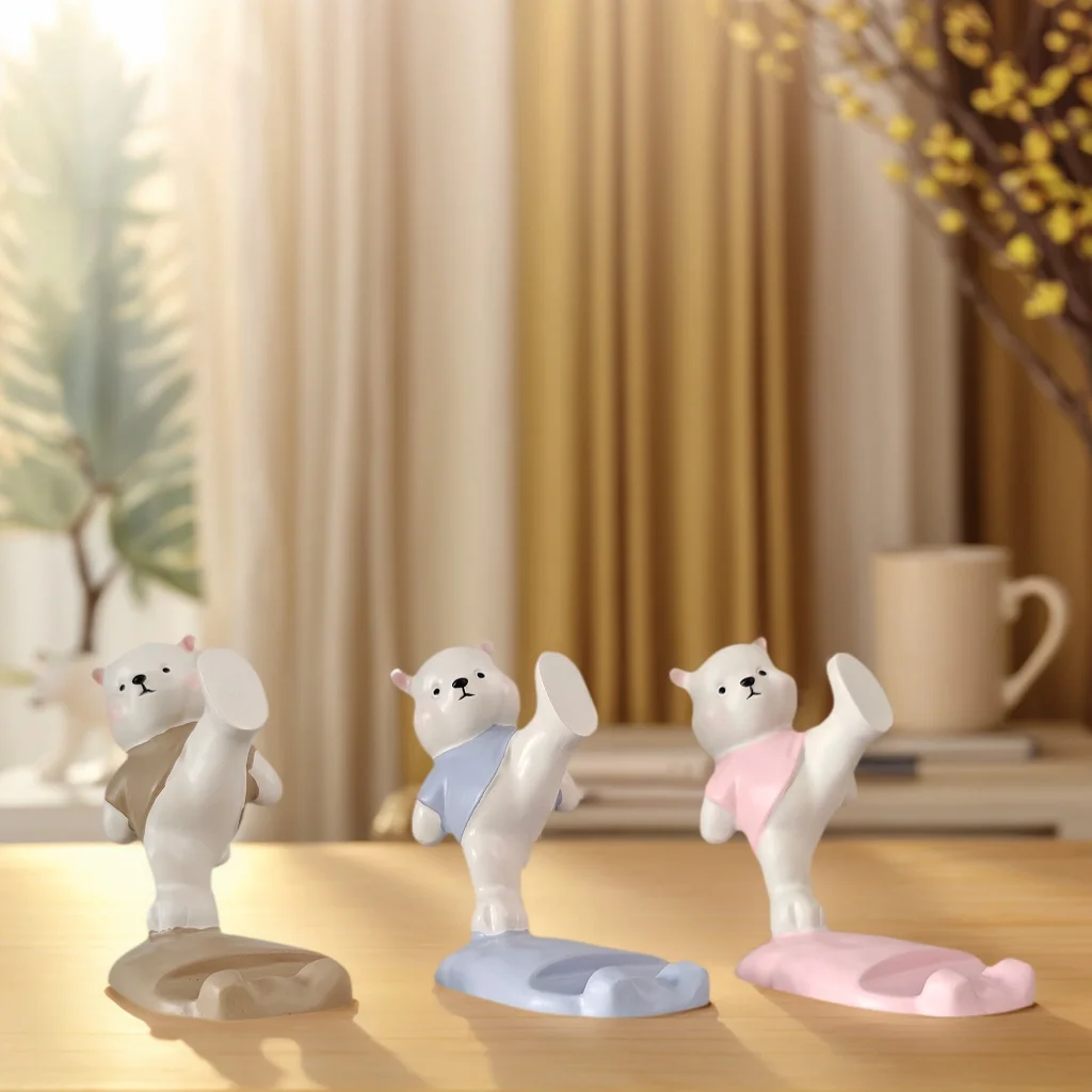 Imagine the delight of seeing this cute resin bear gracing your desk or shelf every day. Its cheerful design not only keeps your mobile device comfortably supported but also adds a whimsical touch to your decor. Whether you prefer the serene blue, warm dark khaki, or sweet pink, this figurine brings warmth, personality, and a sense of fun to any setting. Don't miss out on this charming piece that’s perfect for showing your style and love for animal-inspired decor. Elevate your space and enjoy the playful support it provides daily!