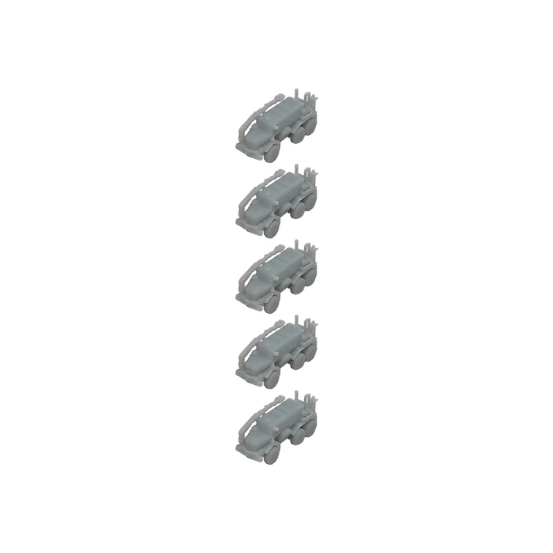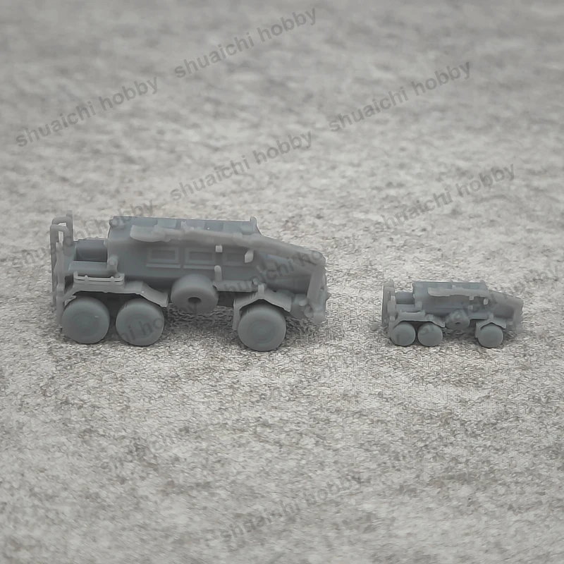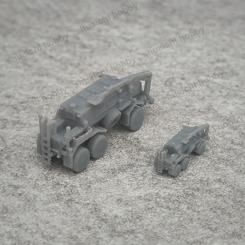 These highly detailed resin models depict the Buffalo MPCV mine-protected vehicle in two scales: 1/700 (1.18cm length) and 1/350 (2.35cm length), perfect for DIY painting enthusiasts. Crafted through precise 3D printing, each set includes five rugged, utilitarian vehicles with intricate surface details, such as panel lines, segmented roofs, and realistic features like antennas and exhaust pipes. Designed for users aged 12 and older, these miniature models are ideal for customizing and displaying. Their uniform gray finish highlights the sturdy, boxy design that emphasizes durability and protection. Due to their small size, careful handling is recommended, and slight color variations or minor repairs can be easily managed through gentle heating or soaking.