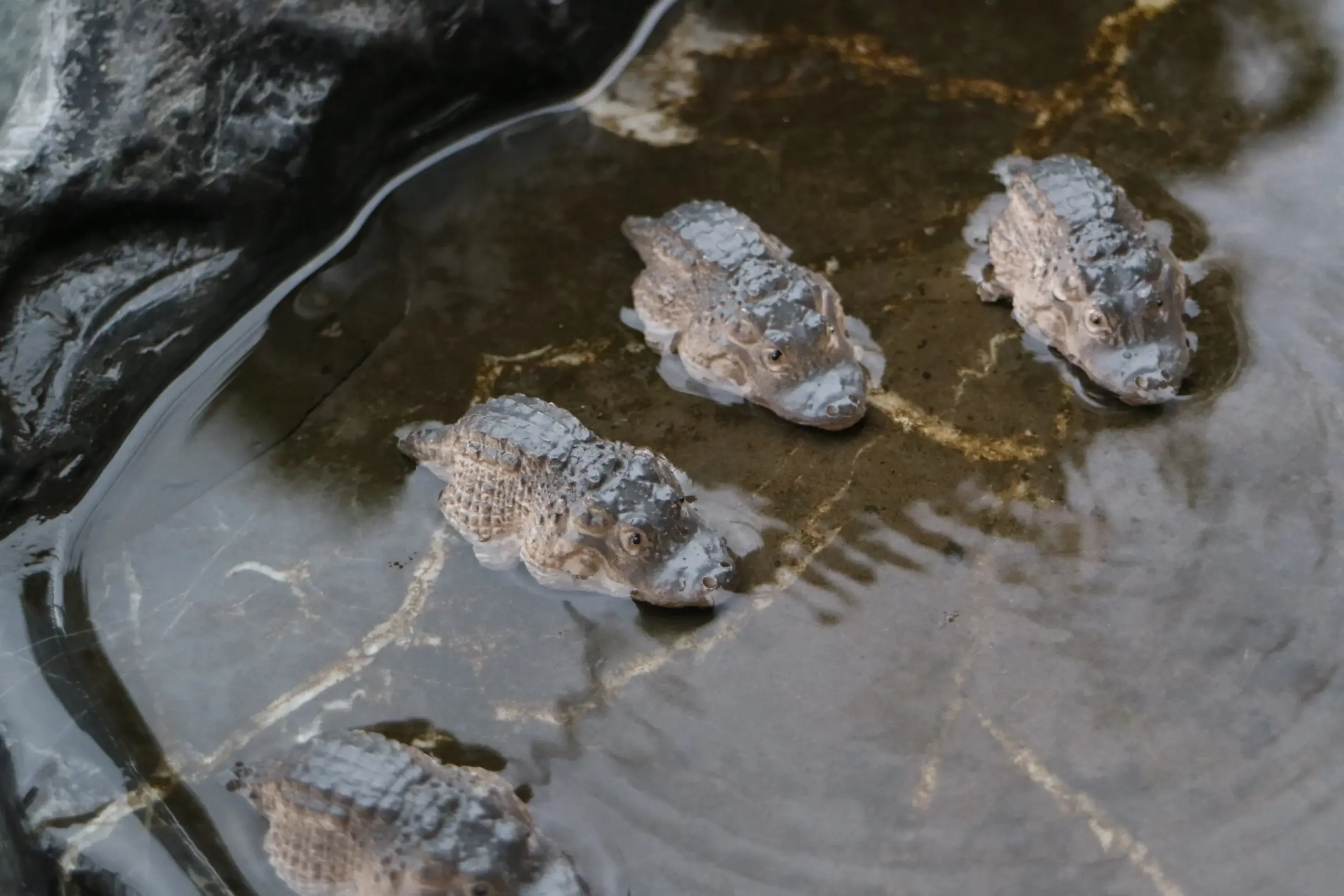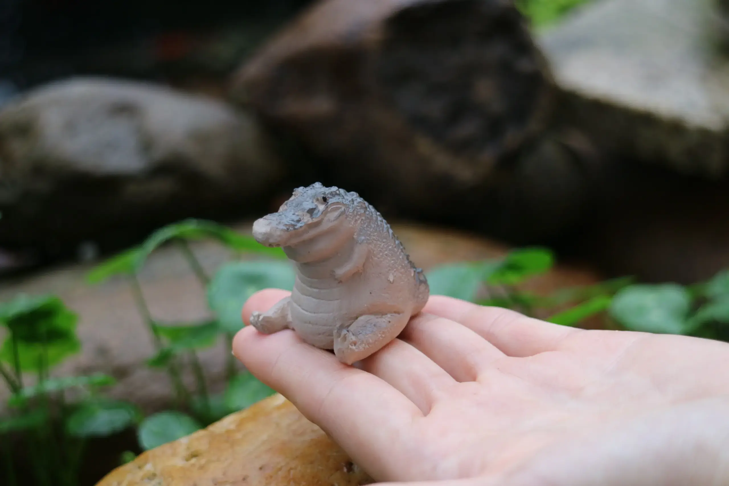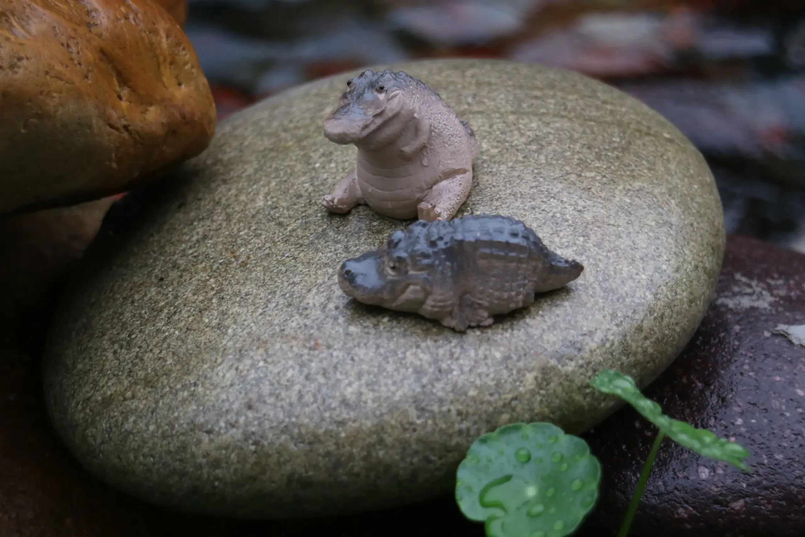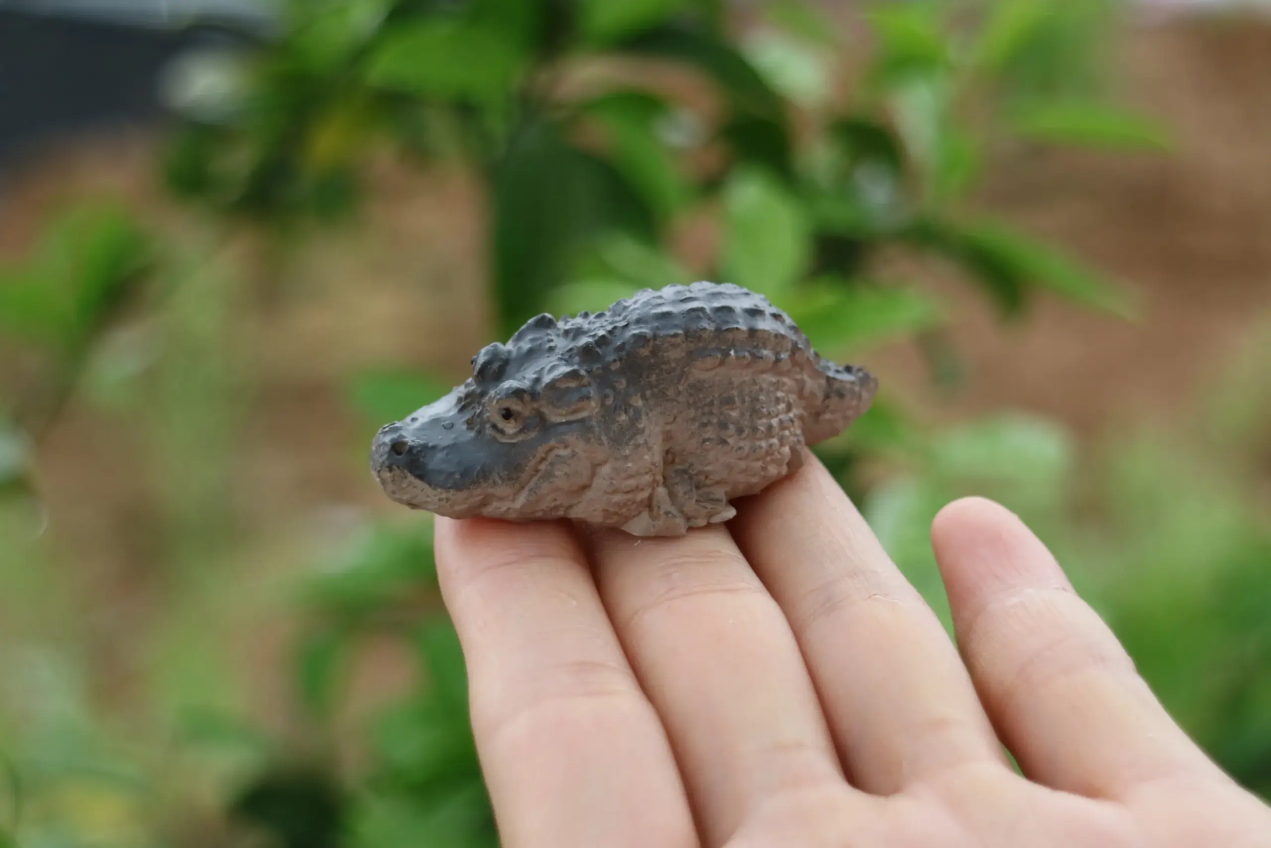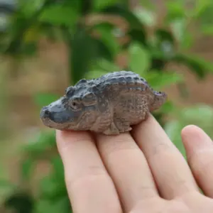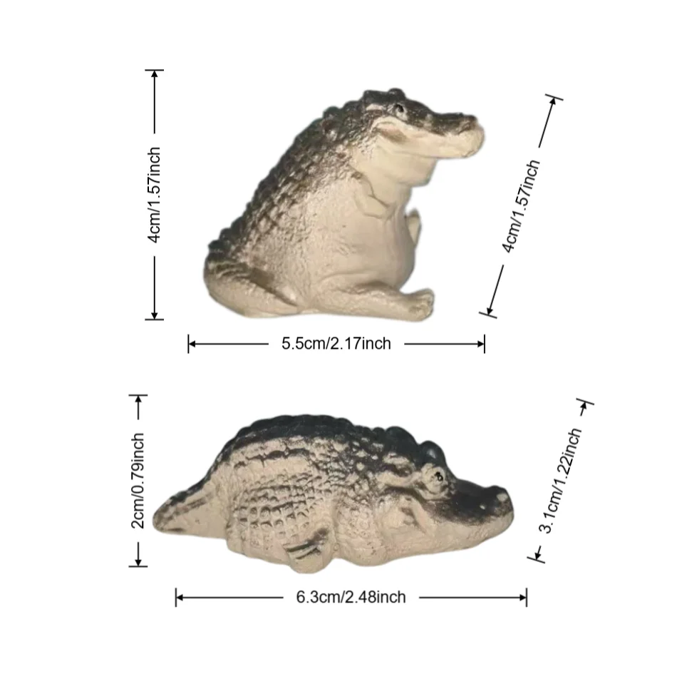 Imagine adding a touch of rustic charm to your outdoor space with these delightful resin crocodile figures. Featuring a textured surface that mimics real crocodile scale, each ornament is painted in a soothing light grey hue. Darker accents highlight their backs and snouts, while lighter tones enhance their natural look on the underside. With refined details such as pointed snouts, subtle yellow eyes, ridges along the back, and tapered tails, these small ornaments bring an authentic yet playful aesthetic to your garden or courtyard. Compact enough to fit comfortably in your hand, they evoke a pastoral style perfect for Halloween, Christmas, or year-round outdoor decoration. These pieces serve as charming accents that blend wildlife inspiration with rustic decor seamlessly.