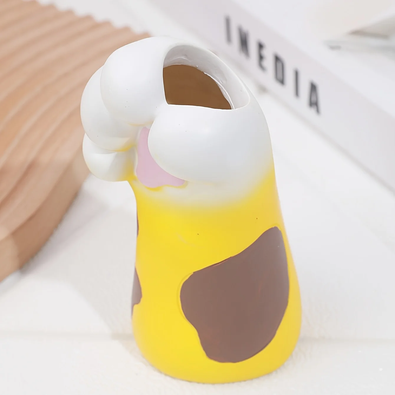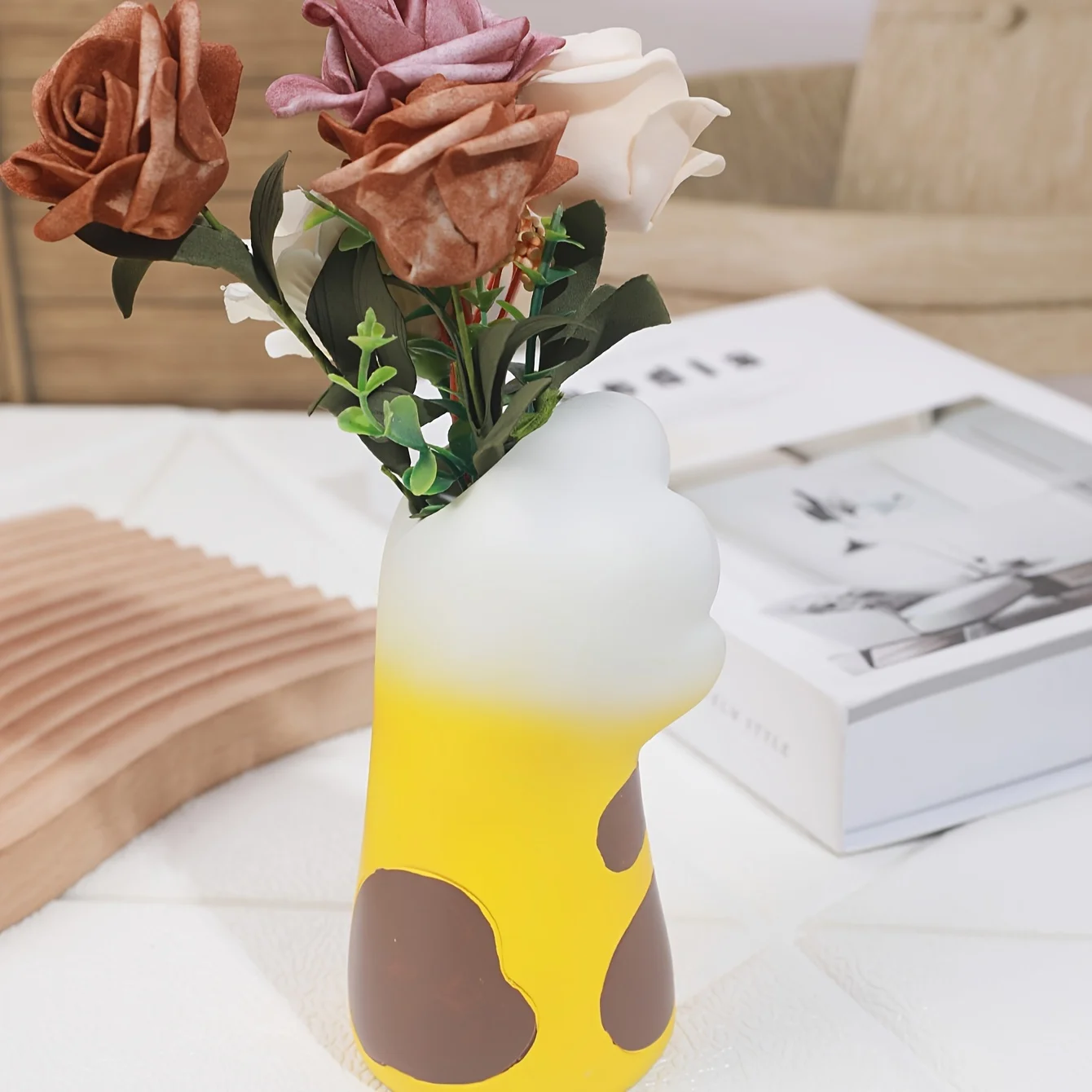 Enrich your home or office decor with this captivating resin hand-shaped vase. Standing approximately 16 centimeters tall, this artistic piece combines playful design and functional elegance. Crafted with care from non-toxic resin, it mimics the delicate appearance of a cat’s paws, featuring rounded, tapered fingers that add a dynamic, realistic touch. Its neutral hue makes it versatile, easily fitting into various interior styles while serving as a charming display for fresh or dried flowers. Whether placed on a desk, bookshelf, or living room table, this vase turns everyday floral arrangements into an artistic statement. A perfect choice for those looking to add personality and creativity to any space, this handcrafted vase is more than just decoration—it’s a conversation piece that brings aesthetic charm and practical beauty together.