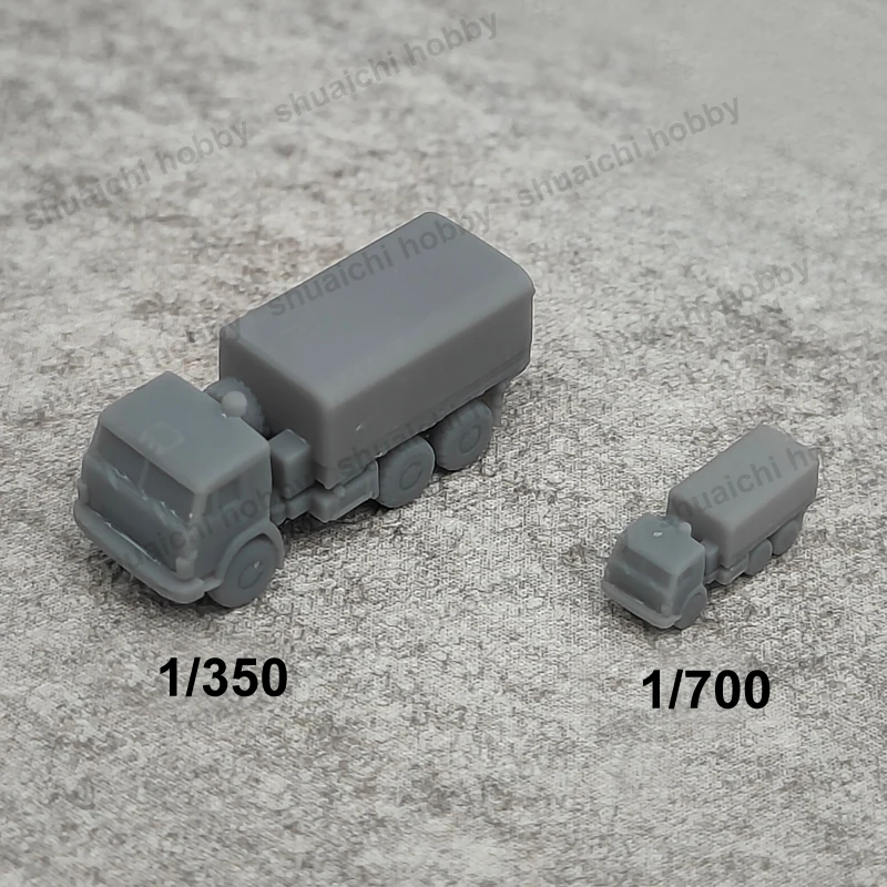 Enhance your collection with this set of five resin models of the Kamaz-5350 military transport truck. Available in two accurate scales—1/700 with a length of 1.02 cm and 1/350 measuring 2.04 cm—these miniatures are perfect for hobbyists who love customizing. Crafted through precise 3D printing, each model showcases a simple yet recognizable silhouette with a boxy cab, minimal detailing, and smooth surfaces. The understated, utilitarian design emphasizes form and function, making them ideal for assembly and personalization. Due to resin properties, slight warping may occur, which can be easily fixed by heating or soaking in hot water. Get ready to bring a realistic military transport vibe to your diorama or model collection with these versatile, DIY miniatures that can be painted and customized to your taste.