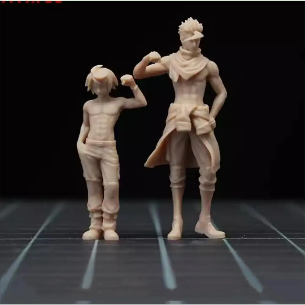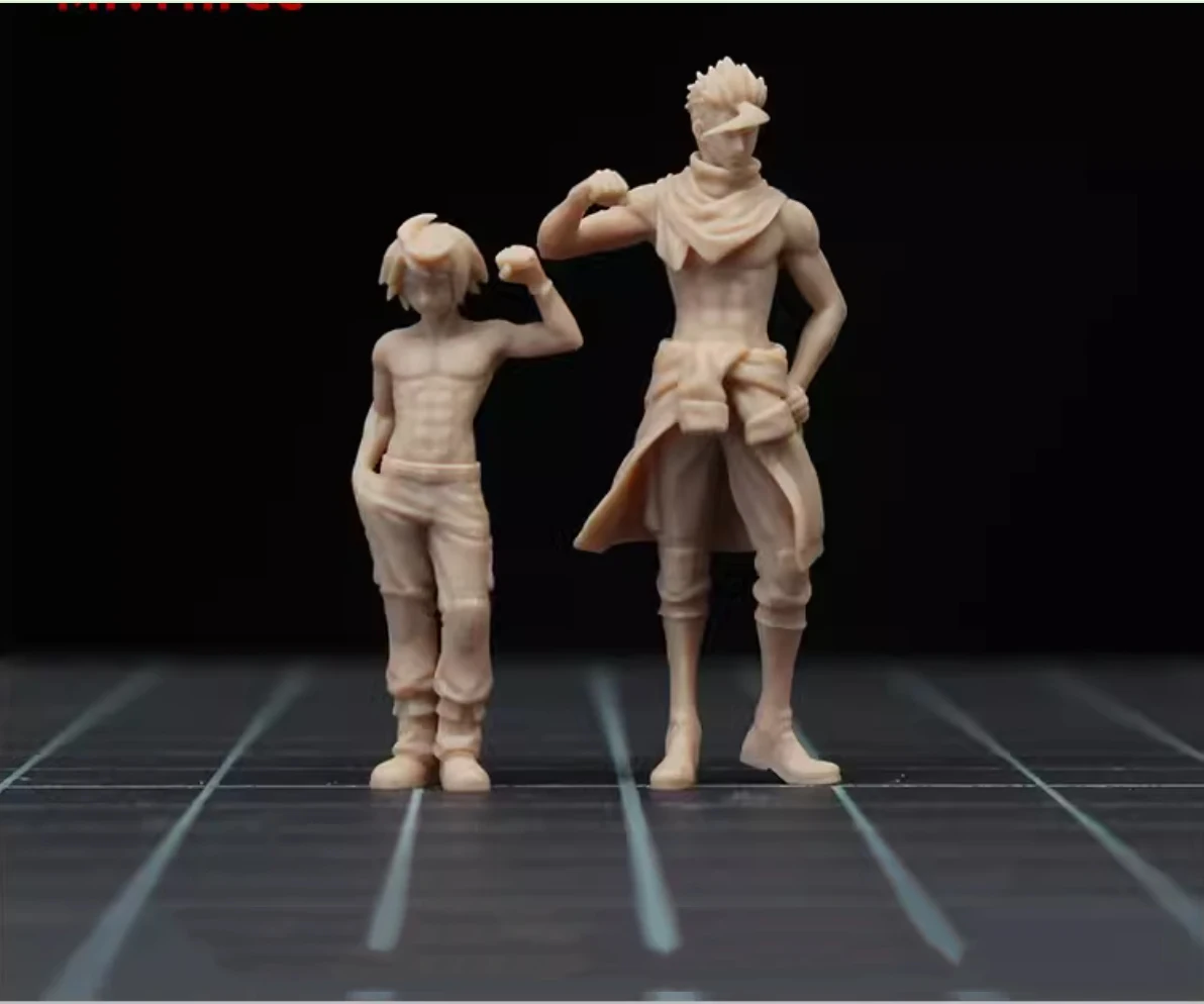Step into a world of creativity with this exquisite set of two resin miniature figures, thoughtfully designed for diorama enthusiasts. Each figure is crafted from high-quality, environmentally-friendly resin, showcasing fine details and smooth finishes that elevate your projects. The taller character stands at 18mm, boasting a muscular frame with spiky hair and a confident pose, while the shorter figure, measuring 12.5mm, presents a casual demeanor with messy hair. Their cartoonish charm adds a unique flair, making them perfect for various themes, from anime to cinematic scenes.
