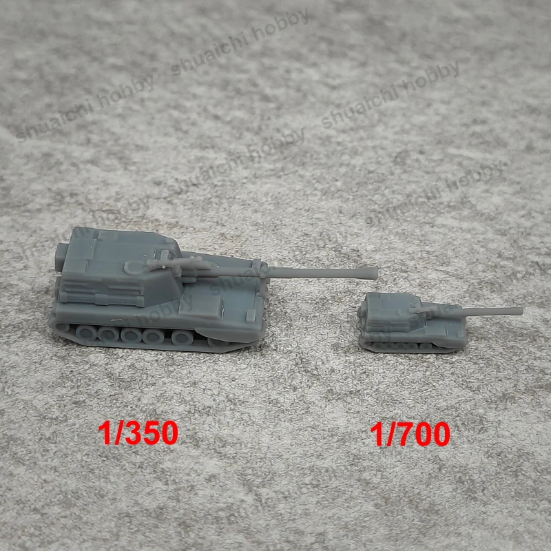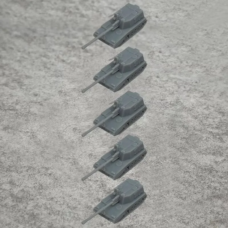 Discover this set of five highly detailed resin models of the PLZ-45 self-propelled gun-howitzer, available in two scales: 1/700 (1.65 cm length) and 1/350 (3.3 cm length). Crafted with precision using 3D printing technology, these DIY assembly kits feature realistic design elements such as boxy turrets, tapered gun barrels, and finely detailed surface panel lines. The models have a smooth, uniform light gray finish, perfect for customization by military modeling enthusiasts aged 14 and above. Due to their small size, care is recommended during handling, and minor adjustments can be made with heat or hot water. Assembly and detailing offer a rewarding experience for hobbyists.
