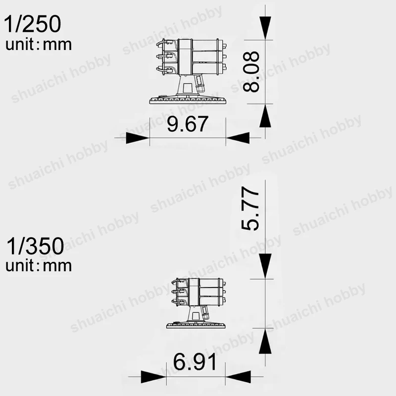 - Available in six scales: 1/72 (33.59×28.06 mm), 1/100 (24.18×20.20 mm), 1/144 (16.80×14.03 mm), 1/200 (12.09×10.10 mm), 1/250 (9.67×8.08 mm), 1/350 (6.91×5.77 mm), ensuring compatibility with various ship models.