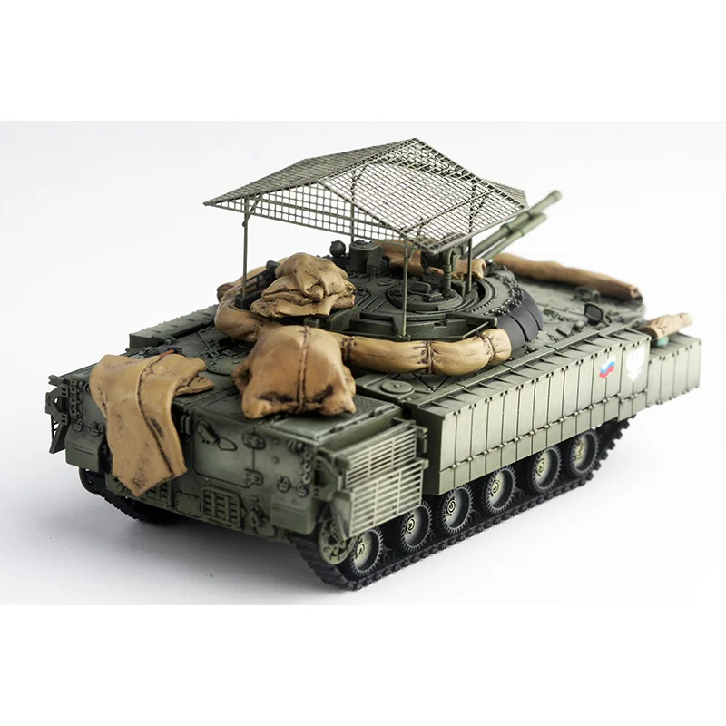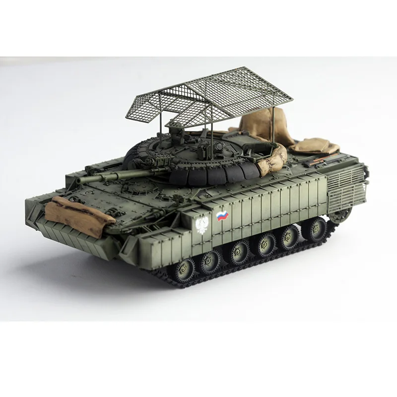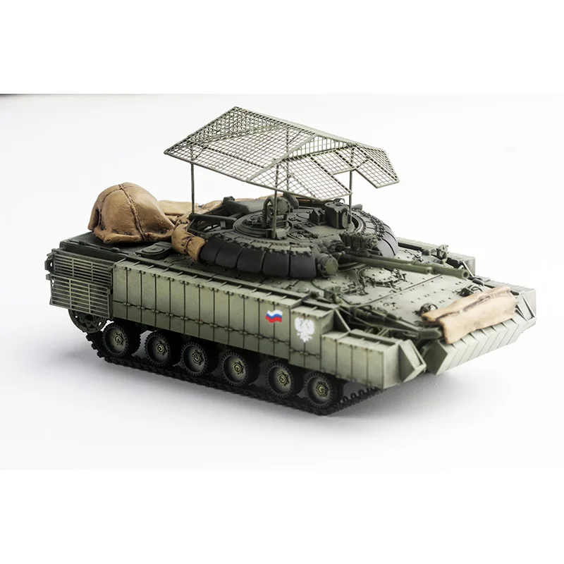 Experience the realism and craftsmanship of this highly detailed 1:72 scale resin model of the Russian BMP3M armored tank. Perfect for collectors and military enthusiasts, this model captures the rugged appearance and intricate details of the actual vehicle. Painted in a muted military green, it features finely crafted surface textures including panel lines, rivets, and layered armor panels. The low-profile turret is equipped with a large, precisely rendered main gun barrel, while a grid-like metal cage sits atop, adding to its authentic militarized look. Beige accessories resembling sandbags provide realistic camouflage, and black tracks with detailed tread patterns complete the rugged appearance. Elevate your display with this realistic miniature, perfect for static presentation or as a collectible piece.