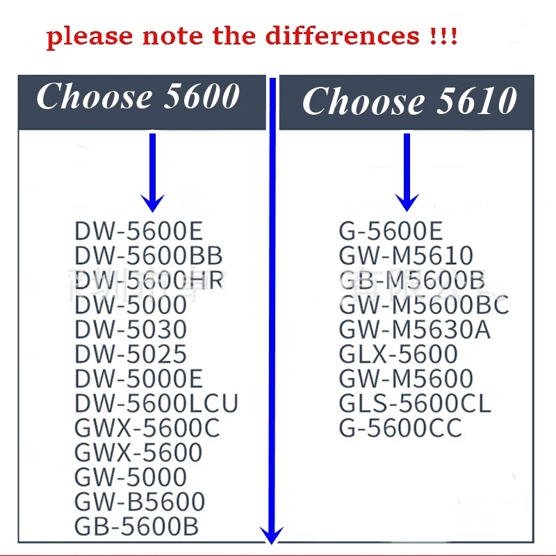 - Compatible with DW5600, GW5600, G-5600, GLX-5600, GW-M5610 models.