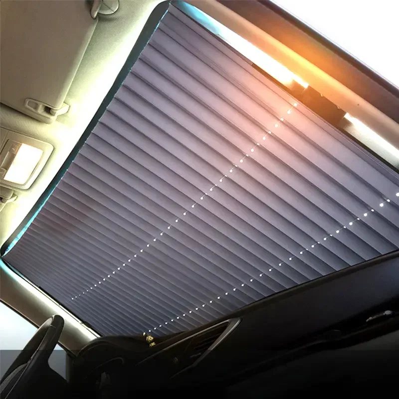 Imagine stepping into a car that’s comfortably cool, even on the hottest summer days. This this retractable windshield sunshade curtain, crafted from reflective aluminum film, offers a sleek solution to keep your vehicle shaded and protected from harmful UV rays. Its deep blue or purple hue adds a modern, stylish touch to your car's interior. The pleated design not only enhances visual appeal but also ensures easy folding for compact storage when not in use. Equipped with 2 to 4 high-quality suction cups, this sunshade adheres securely to your windshield, preventing slips or falls. It’s the perfect accessory for driver comfort, protecting your dashboard and interior while adding a subtle sophisticated aesthetic to your vehicle.