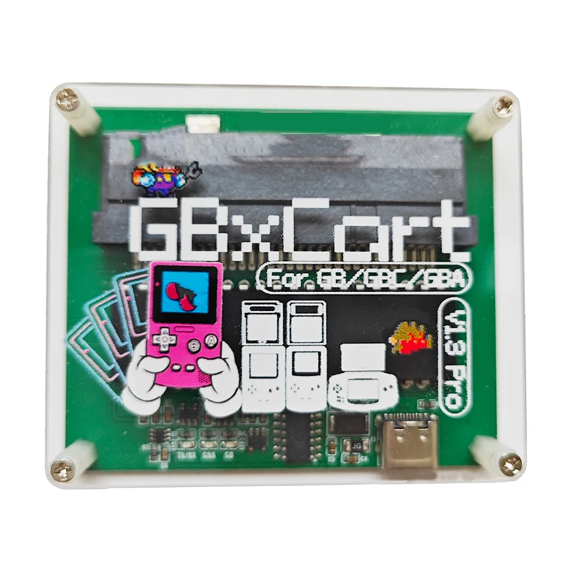 Experience the ultimate convenience with this Retro GBxCart Pro RW, a versatile backup adapter designed for GameBoy, GameBoy Color, GameBoy Advance, and GameBoy Advance SP cartridges. Crafted with a vibrant and playful aesthetic, it combines transparent plastic casings that reveal the intricate internal circuitry, complemented by colorful cartoon-style graphics and a lively label with bold black and red text. The small green PCB contrasts beautifully with the transparent shell, showcasing a technical yet fun appearance. This device allows you to effortlessly read, extract, and backup your game archives and saves, making it an essential tool for enthusiasts who want to preserve and manage their game collections efficiently. Its engaging design merges nostalgia and modern functionality seamlessly.