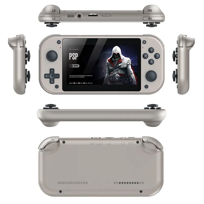 Experience the thrill of retro gaming with this sleek and stylish handheld game console. Its elegant oval design in light gray offers a modern touch, perfect for on-the-go entertainment. The 4.3-inch HD LCD screen delivers vibrant visuals with a resolution of 480×272 pixels, immersing you in classic game worlds. Powered by a fast quad-core Cortex-A7 processor up to 1.2GHz and running a Linux-based system with Emuelec, it ensures smooth gameplay and quick loading times. With support for multiple emulators and 10,000 pre-installed games, nostalgia is guaranteed. Expandable storage of up to 128GB via memory cards provides ample space for your favorite titles. Lightweight and portable, this console is designed for retro game enthusiasts seeking reliable performance combined with modern elegance.