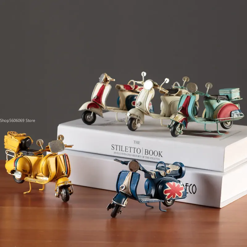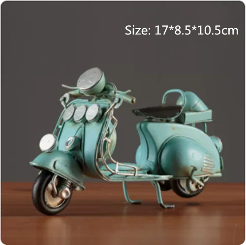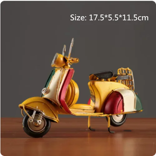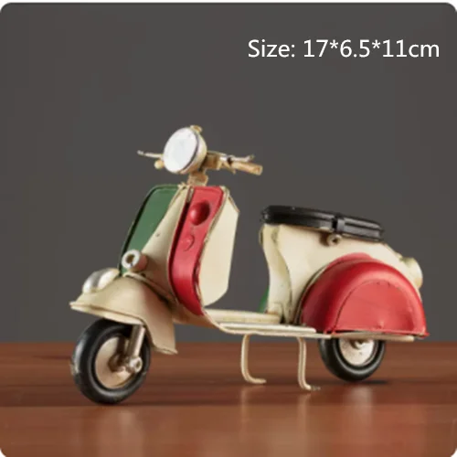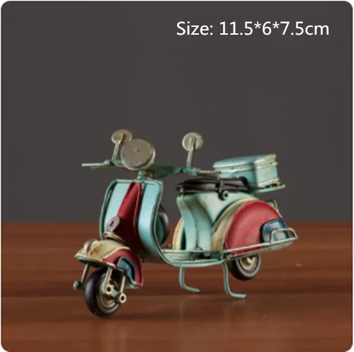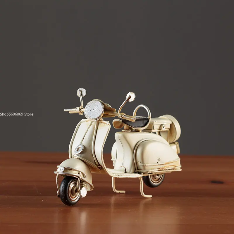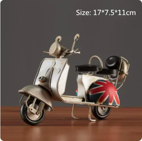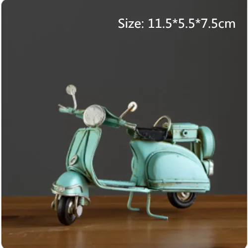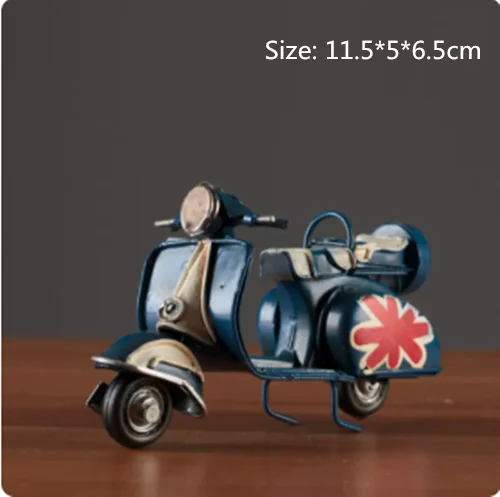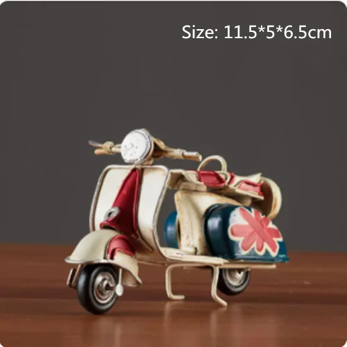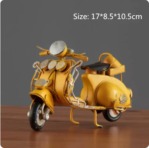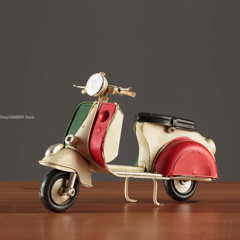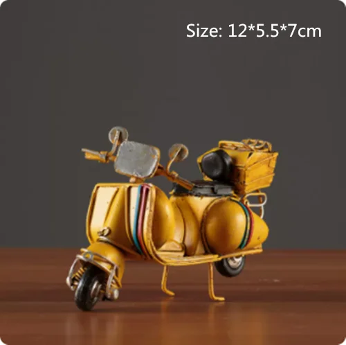 Embrace nostalgia with this retro creative mini iron motorcycle model, a stunning decorative piece perfect for children's rooms, hotels, coffee shops, and living areas. Crafted from high-quality tinplate with a hand-welded finish, it exudes an authentic vintage atmosphere. The meticulous design features intentional scratches and charming spots that enhance its antique allure. Picture it on your desktop or displayed in your shop, drawing admiring glances from every passersby. This piece is not only a remarkable decoration but also a thoughtful gift, making it an ideal addition to your collection of unique items.