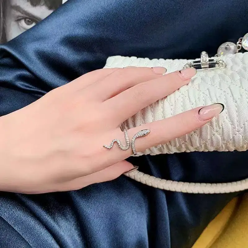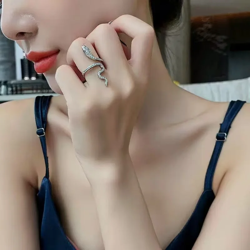 Experience the allure of this retro-inspired open ring, designed to enhance your style with a unique, elegant twist. Made from zinc alloy with a shiny silver plating, this piece boasts a sleek, serpentine shape that captures attention effortlessly. The surface is lavishly encrusted with small, sparkling rhinestones, giving it a glamorous and shimmering appearance. Its open design allows for easy resizing, ensuring a perfect fit for any finger. Whether you're dressing up for a party or adding a touch of vintage charm to everyday wear, this ring combines modern punk aesthetics with sophisticated elegance. Its animal-inspired pattern and ornate details make it an eye-catching accessory you’ll love to wear every day and on special occasions. Elevate your jewelry collection with this versatile piece, and let it reflect your bold, fashionable spirit.