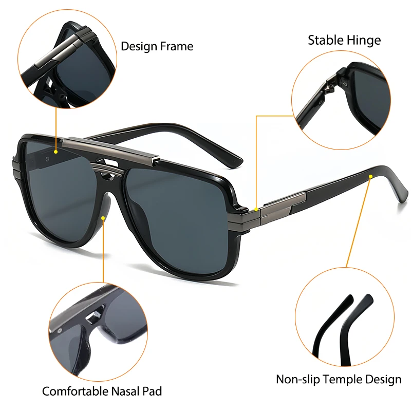 Imagine stepping out confidently wearing these bold, retro-inspired sunglasses. Their oversized square frames are perfect for making a fashionable statement at parties, travel adventures, or casual outings. Designed with a flat top and double bridge, these sunglasses blend punk aesthetics with timeless style. Crafted for adult men and women who want to stand out, they offer UV400 protection, ensuring your eyes stay safe under the sun. Lightweight yet sturdy, their plastic frame balances comfort with durability. Whether you're relaxing at a café, attending a festival, or exploring new destinations, these sunglasses elevate your look and add a touch of confident sophistication. Experience the perfect mix of style, comfort, and protection in every wear.