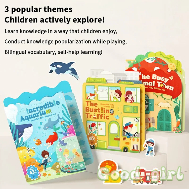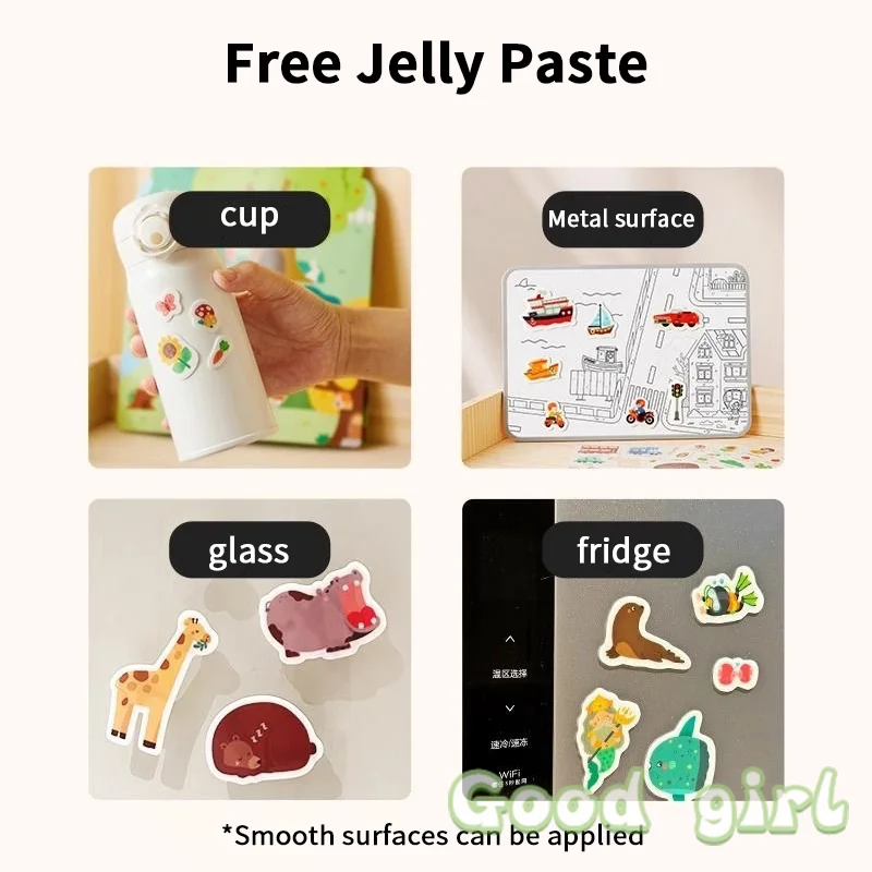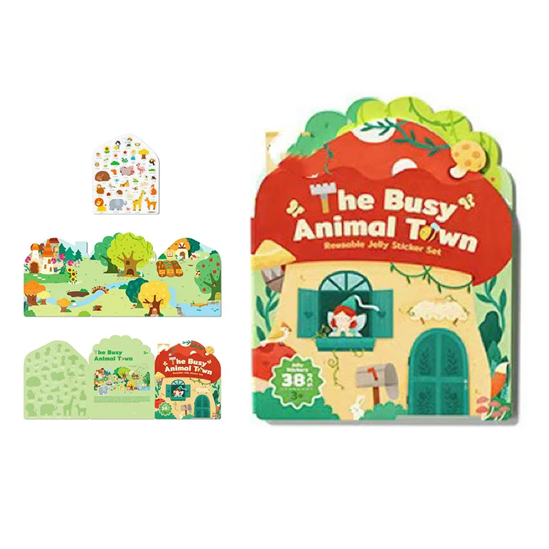 Imagine your child immersed in endless creative play with this vibrant, colorful sticker book. Featuring three themed books filled with 30 bright jelly stickers each, it offers hours of screen-free entertainment. The cheerful animal town illustrations on the covers, with adorable elephants, lions, and birds against lively green scenery, instantly attract young children. Inside, the light green background provides a perfect backdrop for the repositionable stickers, encouraging storytelling and imagination. Durable, waterproof, and washable, these stickers are designed for active kids to explore and enjoy without worry. Compact with a handle for on-the-go fun, this set nurtures learning and independence while providing peace of mind for parents seeking quality entertainment.