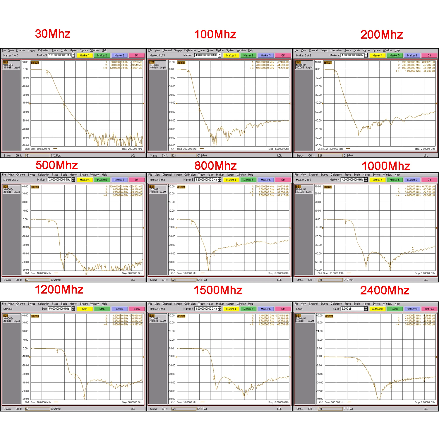 - Implements low insertion loss (≤2.0dB at 30MHz; up to ≤1.7dB at 2400MHz), ensuring minimal signal attenuation while effectively suppressing out-of-band emissions and harmonics.