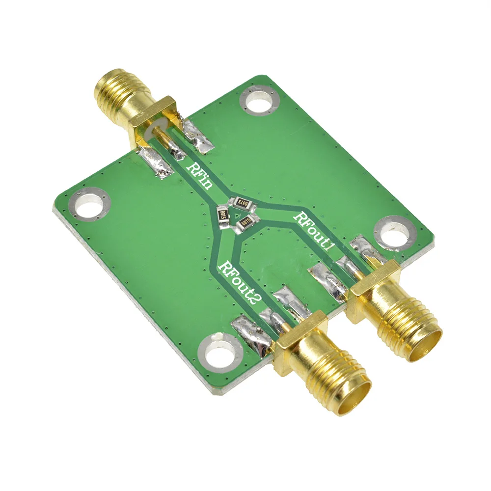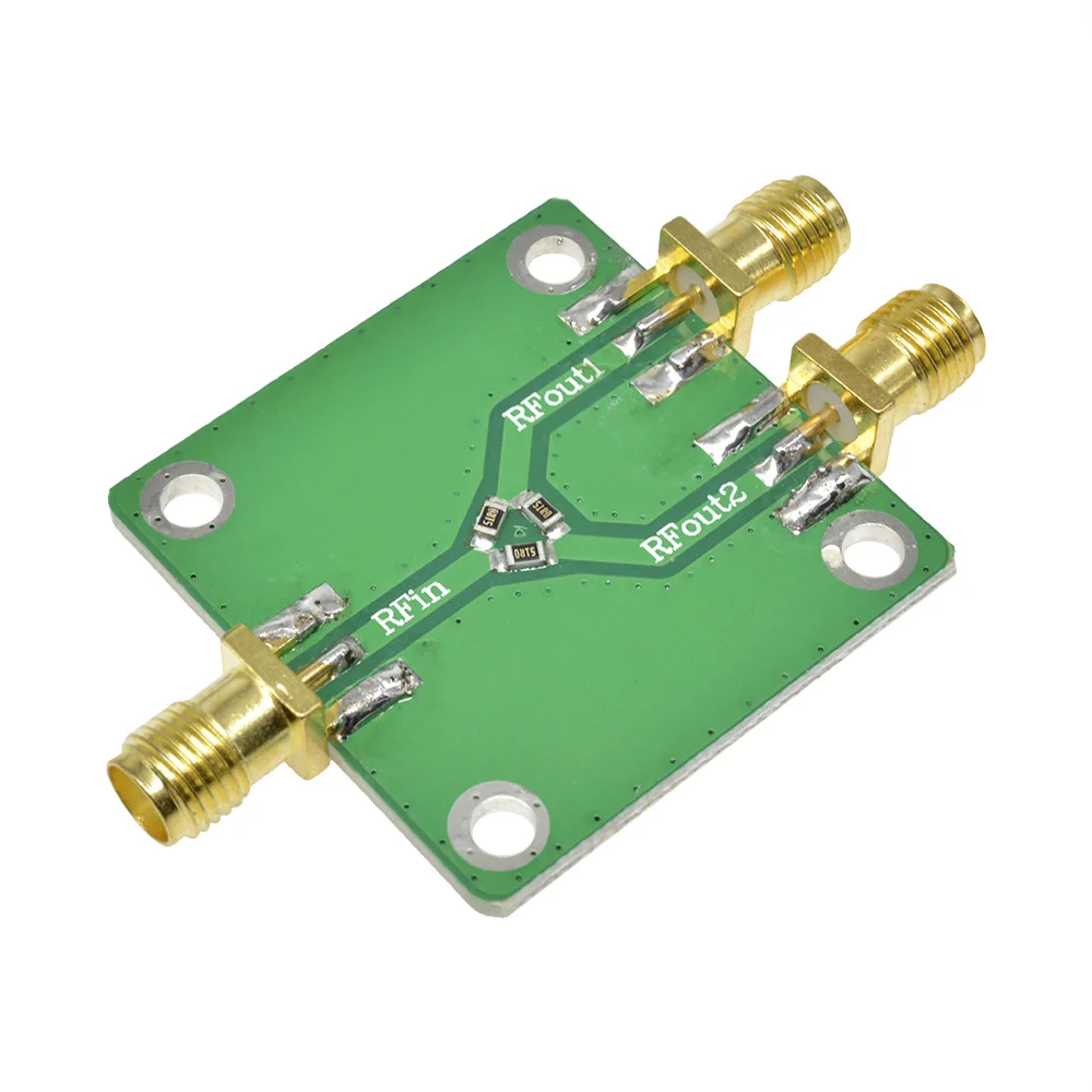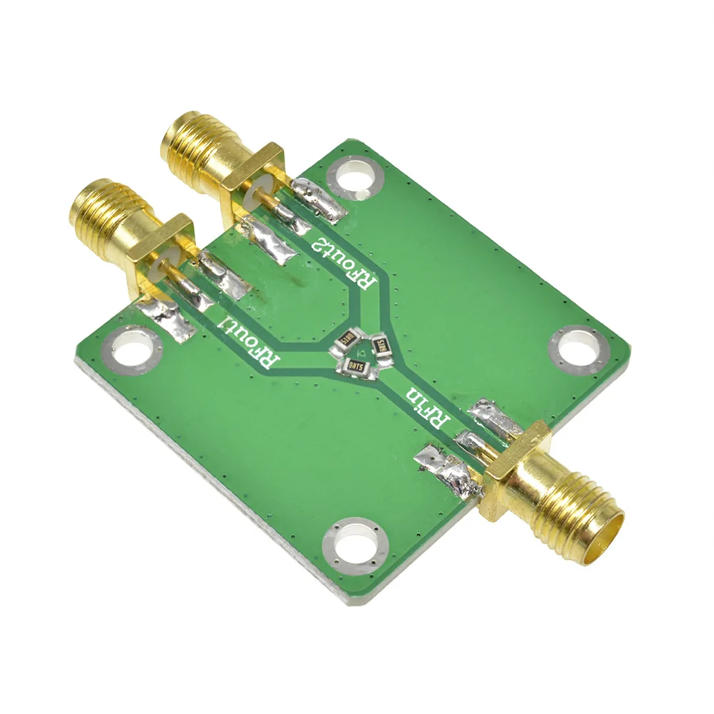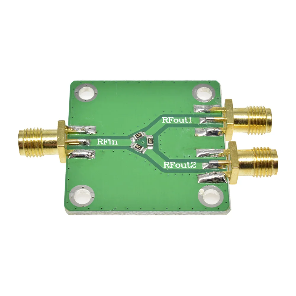 Experience reliable signal splitting with this high-quality RF microwave resistor power splitter, designed for seamless integration into your radio frequency systems. Compact at just 33x33mm and weighing only 9 grams, it offers a robust, industrial aesthetic with a metallic or green PCB surface. Its high performance ensures stable operation from DC up to 5GHz, and with an output attenuation of 6dB, it guarantees precise power distribution. Whether used in communications, testing, or broadcasting, this device simplifies your work with a straightforward design and durable construction. Its SMA-K connectors provide secure, professional connections, making it ideal for portable, high-frequency RF applications requiring efficient 1-to-2 power distribution.