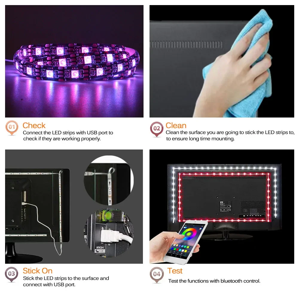 - Flexible 5V USB-powered LED strip available in lengths of 1m to 5m, suitable for precise fit around your TV edges for even illumination.