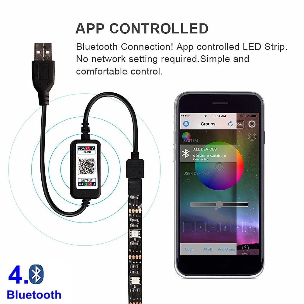 Transform your viewing experience with this sleek and versatile RGB LED strip designed to add a dynamic glow to your TV setup. With a flexible, semi-transparent housing, it easily conforms to the edges of your screen, emitting a vivid, evenly distributed blue light that enhances ambiance. The strip features 30 high-quality SMD 5050 LEDs per meter, capable of producing colorful, customizable lighting. Controlled via a compact Bluetooth remote, you can effortlessly adjust colors, synchronize with music, select patterns, and set schedules using a dedicated app. Powered by a standard USB connection and compatible with a 5V 2A power supply for lengths of 2 meters or more, this product transforms your space into a modern, immersive environment ideal for entertainment and relaxation.
