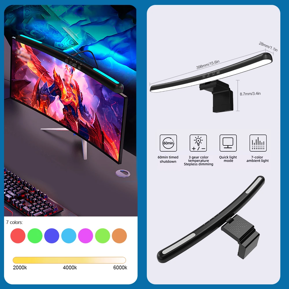 - Made with durable black ABS, the light bar measures suitable for large monitors, weighing approximately 66 grams, ensuring easy installation without adding bulk to your workspace.