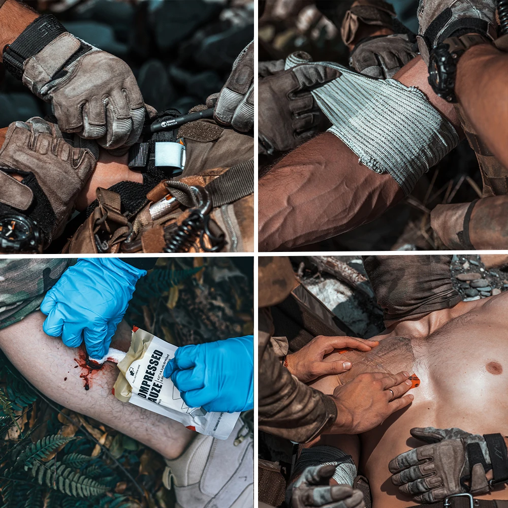 - Contains essential medical accessories such as chest seal, combat cravat, gauze, bandages, tourniquet, trauma scissors, and gloves, enabling comprehensive emergency response capabilities.