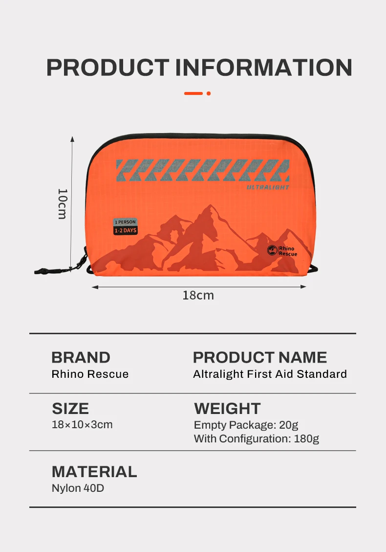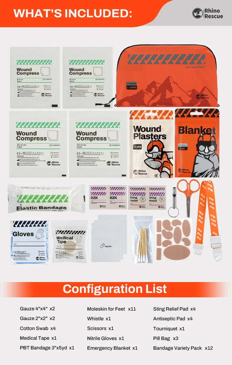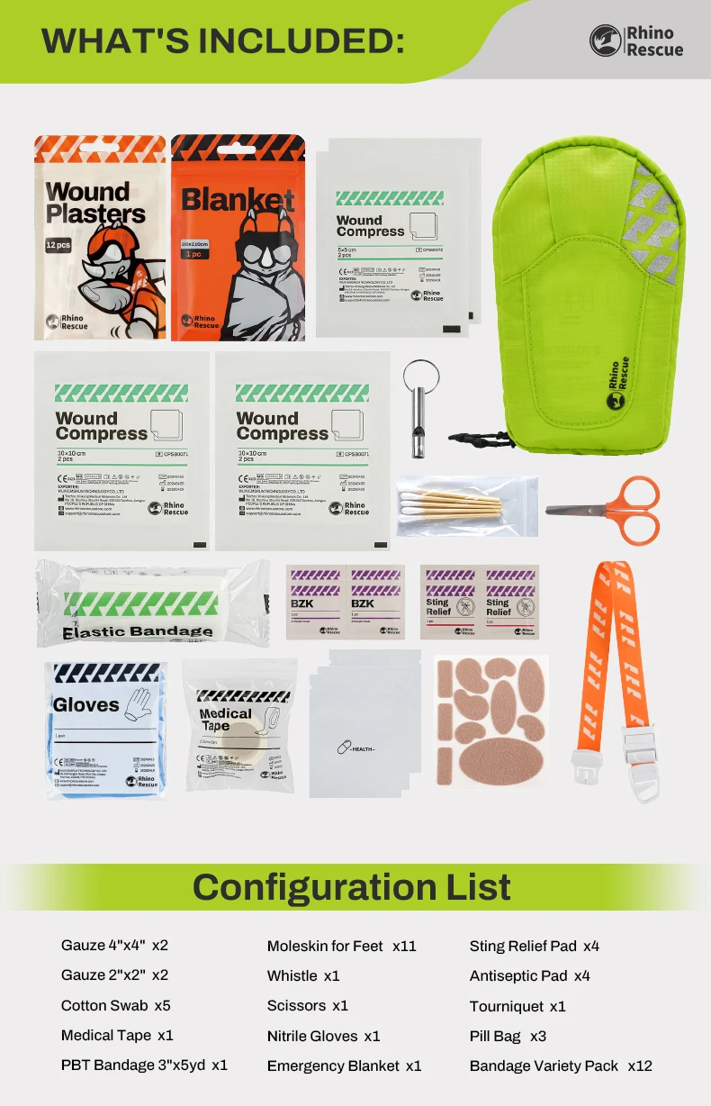 Experience peace of mind with this lightweight, portable RHINO RESCUE outdoor travel first aid kit. Designed for outdoor enthusiasts, hikers, climbers, cyclists, and travelers, it offers reliable protection in all environments. Its waterproof construction ensures contents stay dry and protected against the elements, making it ideal for unpredictable weather conditions. Compact yet comprehensive, this kit helps you handle minor injuries quickly and efficiently during your adventures. Whether you're on a mountain trail or in your car, having this kit close at hand means you're always prepared. Trust in the durability and practicality of this essential safety companion, so you can focus on enjoying your outdoor pursuits with confidence.