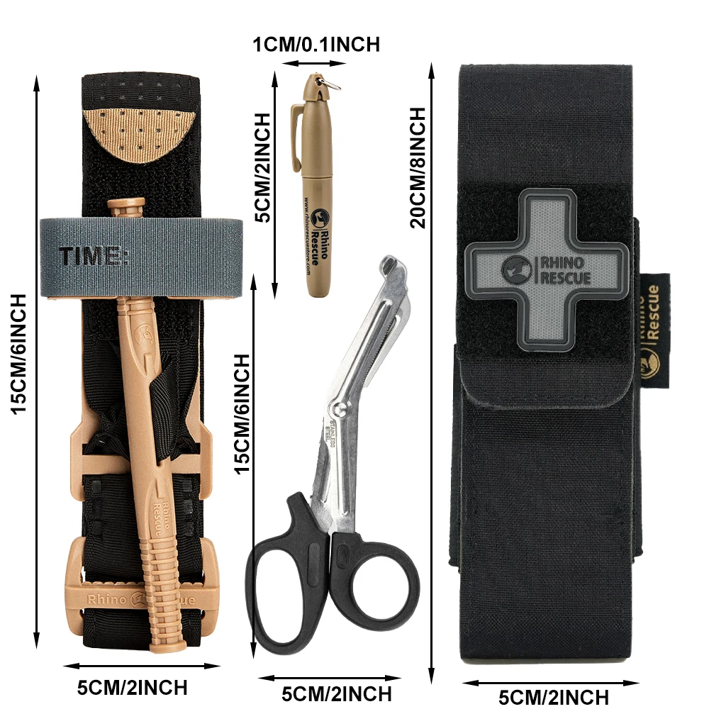 - Technical details: Measures approximately [Dimensions], made with high-quality nylon fabric. It contains a durable Velcro flap, a black elastic band for the tourniquet, and is free from any concerning chemicals, ensuring safety in all conditions.