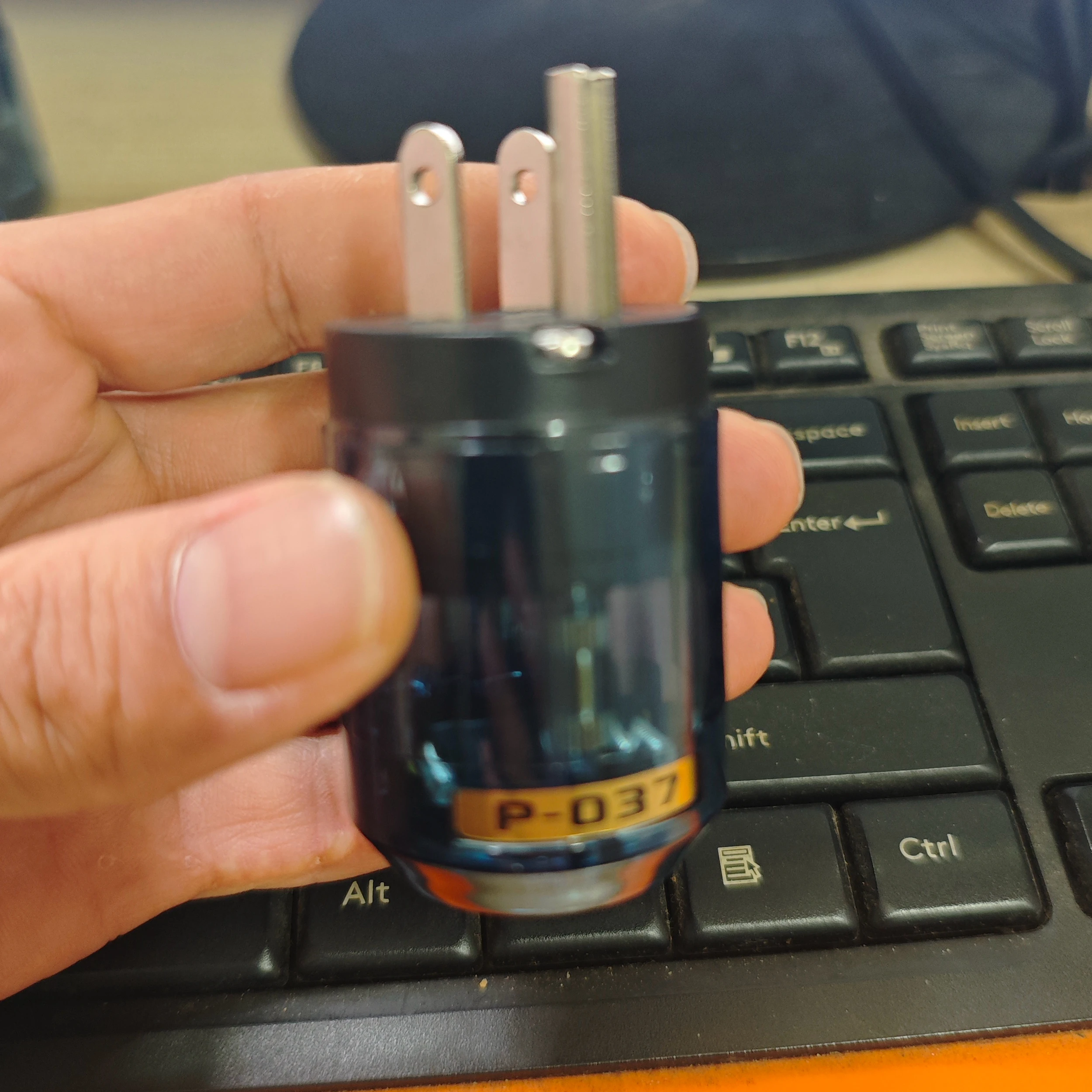Experience the precision and quality of this sleek, modern power plug connector, designed to meet high standards for audio and power cable connections. Featuring a transparent blue-tinted plastic casing, you can see the internal copper conductors and metal components, highlighting its meticulous craftsmanship. The black plastic top housing extends slightly upward, providing a clean contrast with the polished metal prongs. The male connector includes a sturdy, non-magnetic black brass pin, ensuring reliable conductivity. Suitable for EU, US, and AU sockets, this 8-shape plug blends functionality with a refined aesthetic. Its durable construction makes it ideal for professional audio setups, high-end electronics, or custom power solutions where quality and appearance matter.