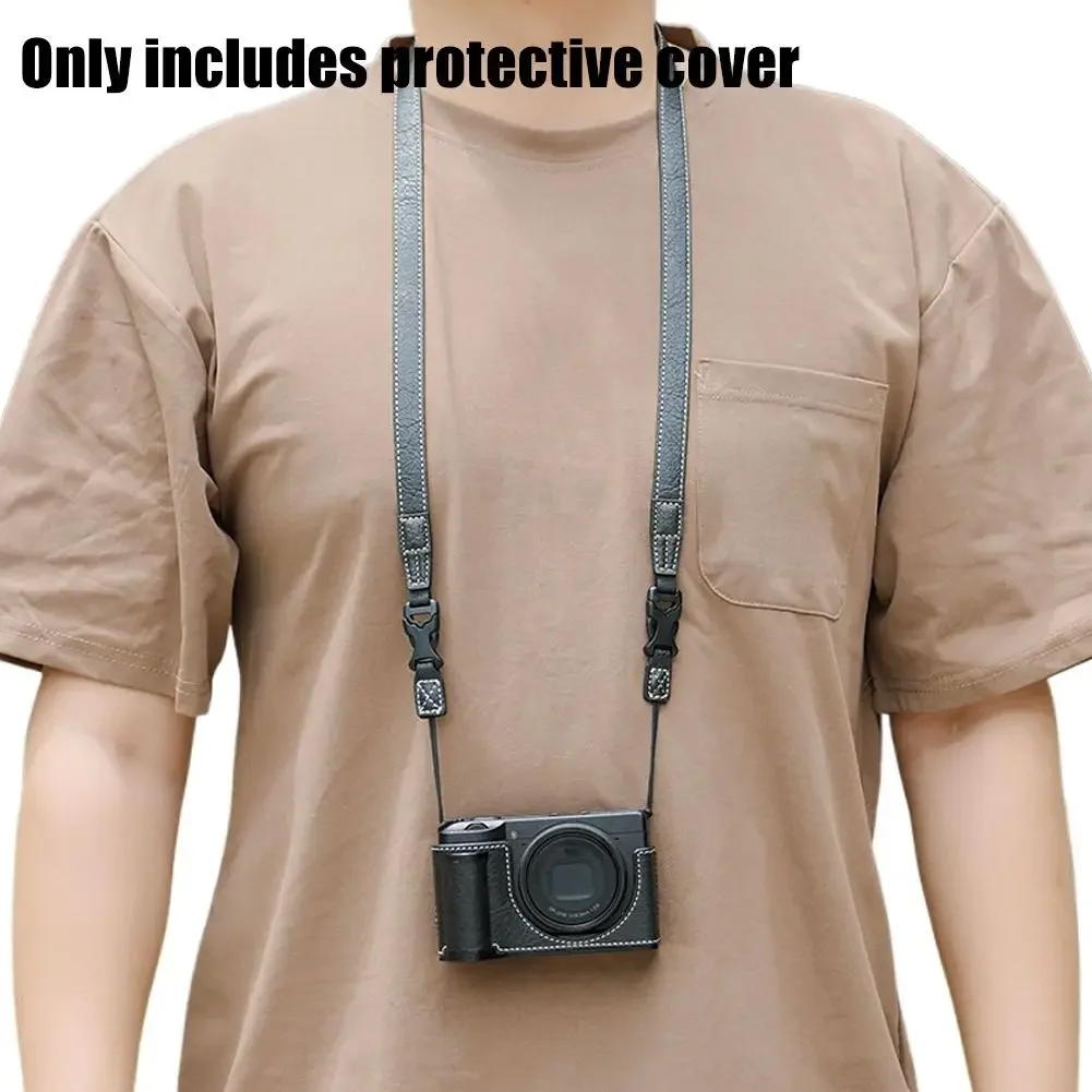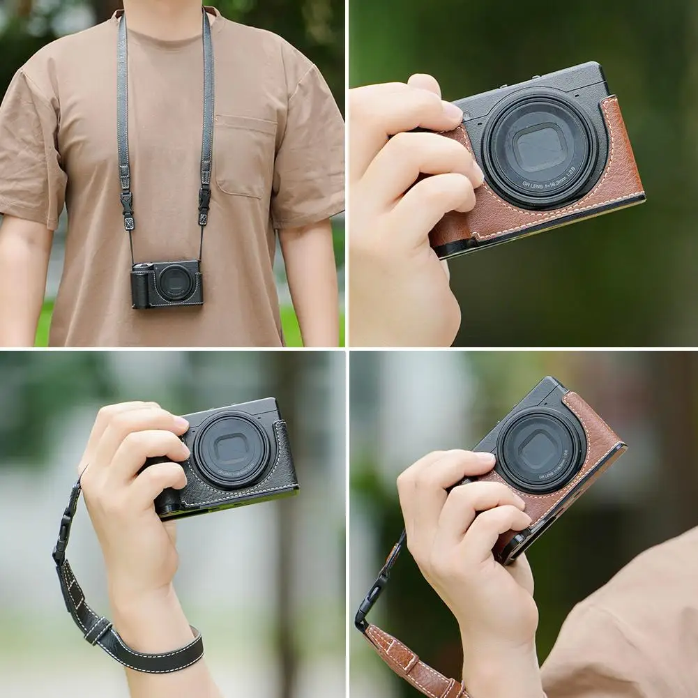 Experience the perfect blend of style, protection, and convenience with this sophisticated leather camera cover designed specifically for Ricoh GR series models, including the Ricoh GR3x. Crafted from high-quality PU leather with a textured, smooth finish, it offers both durability and a refined aesthetic. The interior lined with plush velvet ensures gentle protection for your camera, keeping it free from scratches. An integrated aluminum alloy base provides robust support against accidental impacts. The precise cutouts guarantee full operational access to all camera functions, while the 1/4 screw hole allows for additional equipment attachment. Available in six stylish variations—black and coffee tones with different strap options—you can customize your setup for everyday use or professional shoots. Elevate your photography experience with this premium, full-protection leather case.