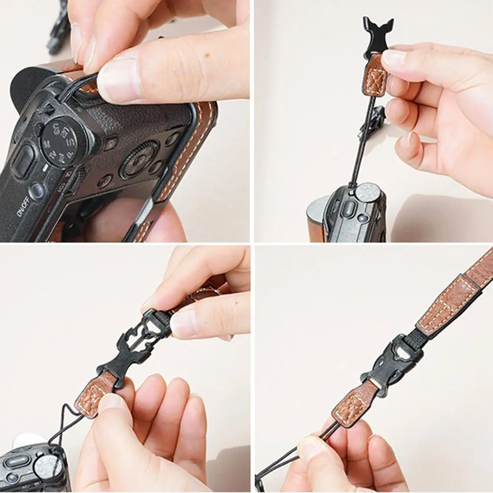 - Supports customizable carrying options, including a padded wrist strap or a leather shoulder strap with metal clasps, for comfort and convenience.