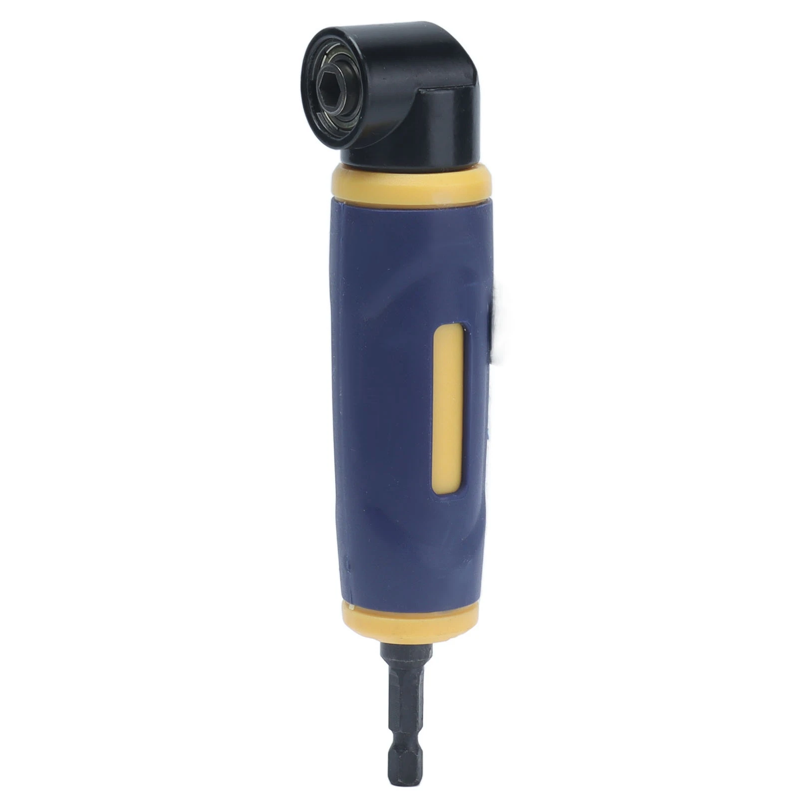 Picture yourself effortlessly tightening screws and nuts in tight, hard-to-reach spaces with this innovative right angle drill adapter. Crafted from high-quality chrome vanadium alloy steel, it promises durability and strength for prolonged use. Its ergonomic ABS handle stays cool during operation, providing a comfortable grip. The built-in powerful magnet allows for quick, secure bit changes, saving you time and effort. Designed with a 90° adjustable angle, this adapter navigates narrow spaces that conventional tools cannot access. Compatible with all 1/4-inch standard hex shank drill bits, it transforms your electric drill or handheld wrench into a precision tool perfect for complex projects. The bright yellow and blue design makes it easy to spot in your toolbox, combining functionality with vibrant style.