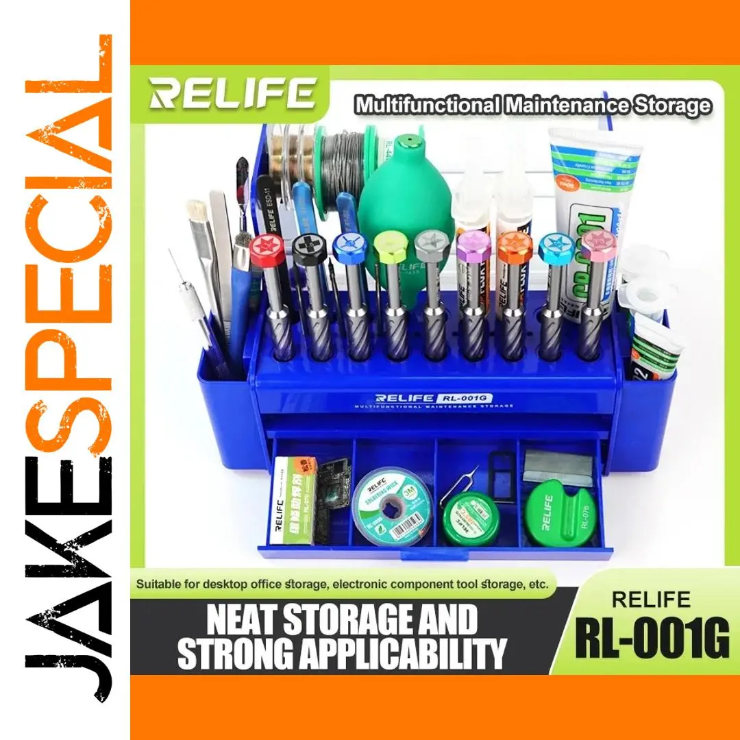 Imagine having all your mobile phone repair tools and parts perfectly organized in one sturdy, vibrant blue container. The this RELIFE RL-001G Multifunction Storage Box offers a large capacity and durable plastic construction, making it ideal for DIY enthusiasts and professionals alike. Its thoughtful layout features compartments and slots tailored to hold various accessories, including colorful precision tools with star-shaped grips, soldering wires, adhesive tubes, and small containers. Whether you're repairing phones or organizing electronic parts, this storage box simplifies your workflow. Its robust design ensures long-lasting performance, while its vibrant color adds a touch of brightness to your workspace. Experience the convenience of efficient organization with this practical, versatile solution designed specifically for maintenance and repair.