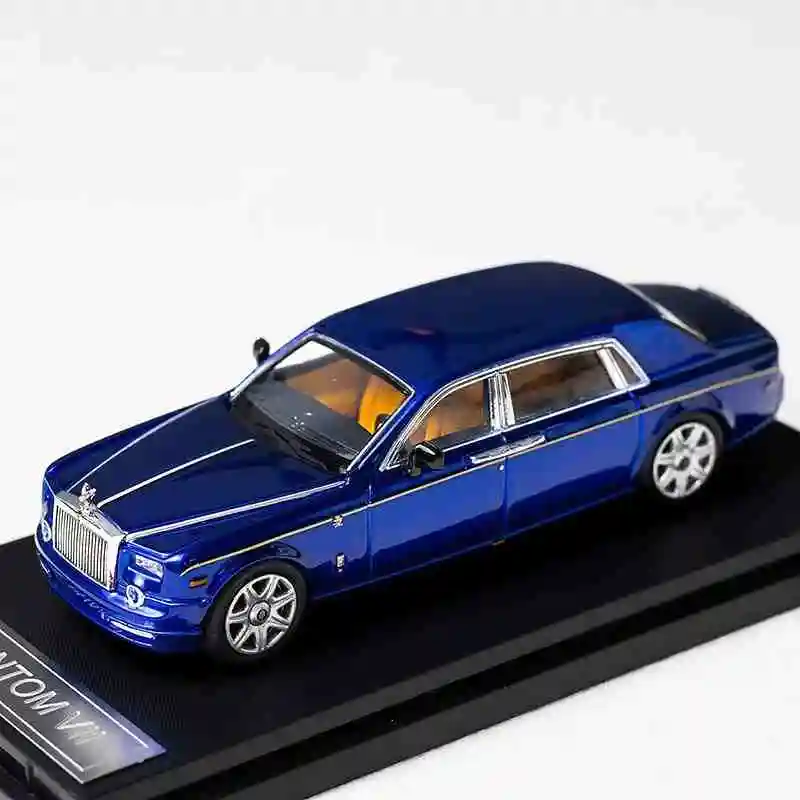 This exquisite 1:64 scale model of the Rolls Royce Phantom VII is crafted from high-quality alloy and plastic, measuring approximately 8 cm in length. Featuring a sleek black finish, it showcases the iconic elongated silhouette and smooth lines of the original vehicle. The model includes intricate details such as a prominent grille, well-defined headlights, realistic wheels with black rims, and chrome-like trim on the side windows. Metallic accents along the edges enhance its luxurious appeal. Perfect for collectors and enthusiasts, this diecast model captures the essence of elegance without the need for batteries or electricity. Available in black, white, and blue.
