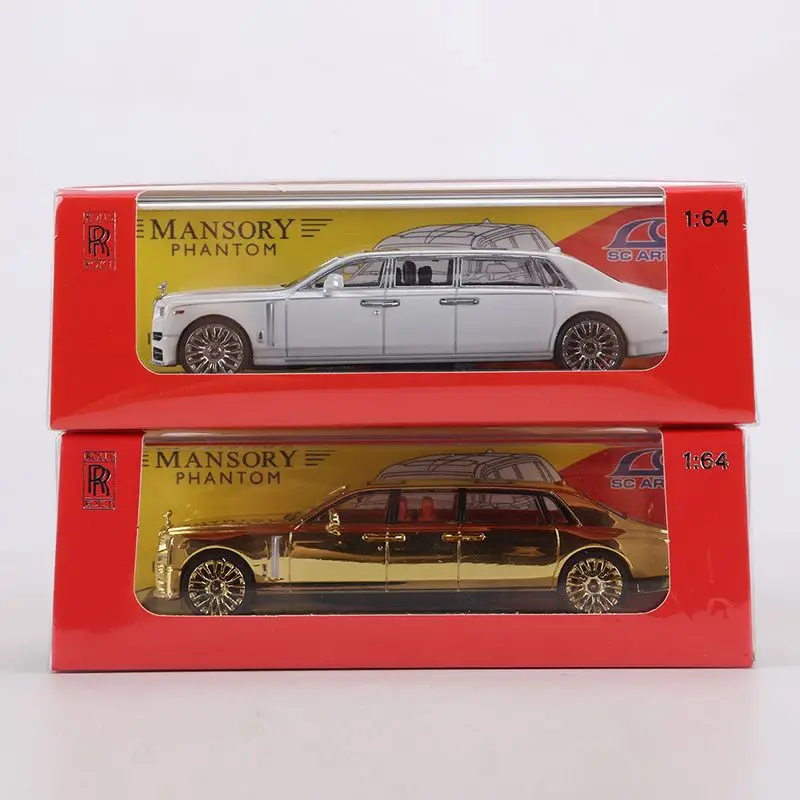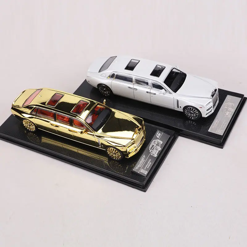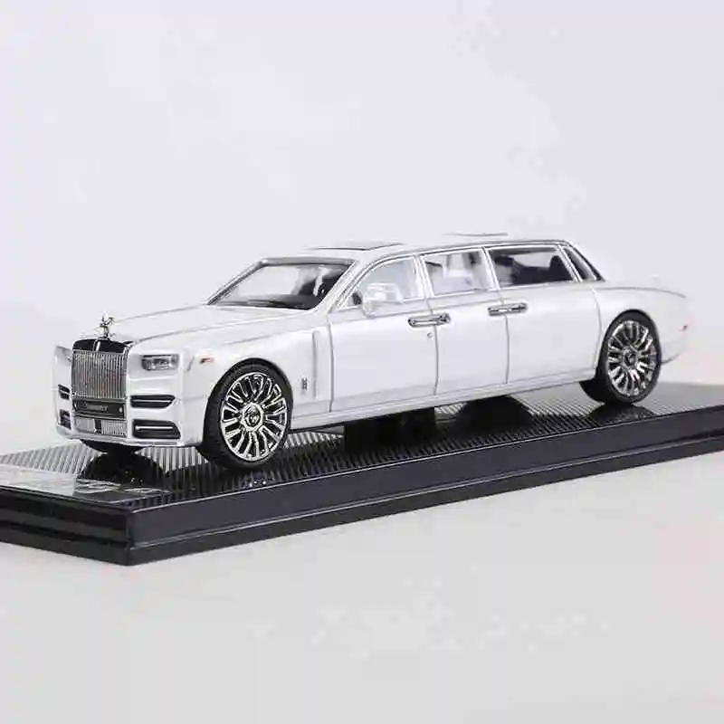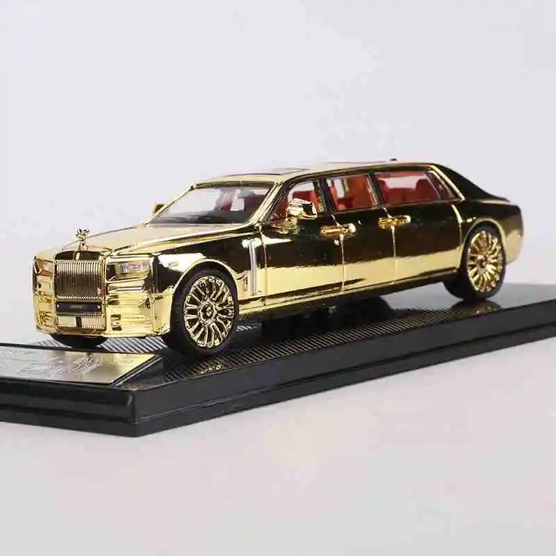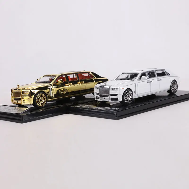 Experience luxury and elegance with this highly detailed 1:64 scale diecast model of the Rolls Royce Phantom VIII. Measuring approximately 9.2 cm in length, this miniature replica captures every intricate feature of the original. Crafted from alloy and plastic, it boasts a shiny metallic finish in gold, champagne, or white, enhancing its premium appearance. The refined lines, elongated silhouette, and meticulously sculpted details like the front grille, headlights, side mirrors, and multi-spoke rims offer a realistic and sophisticated look. Its smooth, curved roof features a subtle sunroof or panoramic window, with transparent tinted windows revealing the interior, including dashboard and seats. Perfect for display and collection, this model brings a touch of luxury to any space.