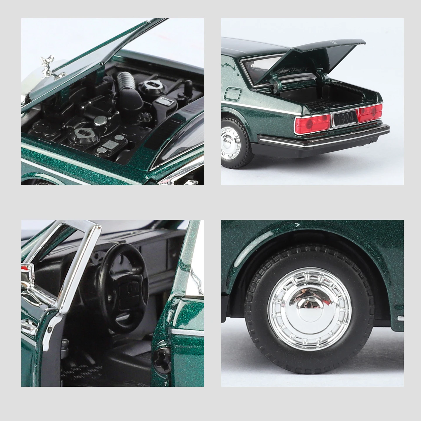 The Rolls Royce Silver Seraph diecast model is a stunning 1:32 scale replica that captures the elegance and luxury of the original car. With a polished white exterior exhibiting a glossy finish, this model reflects the opulence that Rolls Royce is renowned for. Adorned with a detailed front grille and the iconic Spirit of Ecstasy figurine, every detail, from the realistic headlights to the sophisticated dashboard visible through the windows, exemplifies craftsmanship. This collectible is perfect for display or as a memorable gift, making it a must-have for car enthusiasts and collectors. Elevate your collection with this exquisite representation of automotive excellence.