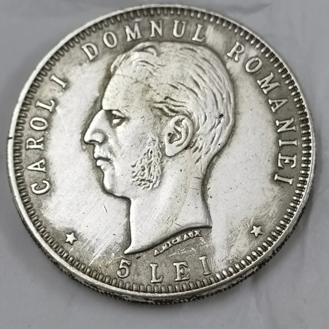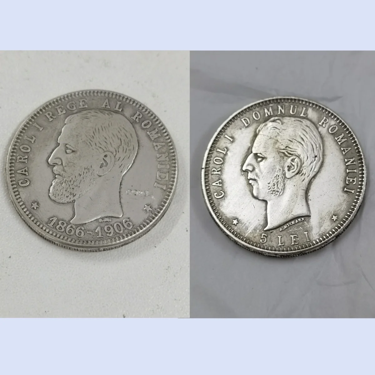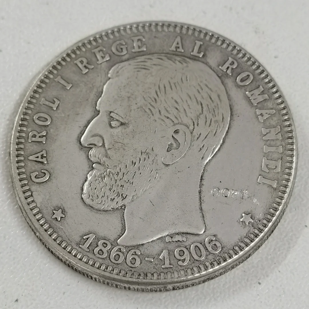 This copper imitation coin measures 38mm in diameter and features an antique European style, showcasing finely carved details of a historical figure from the period 1900-1919. The design includes a textured profile portrait of Carol I facing left, with inscriptions and decorative stars that evoke a regal, commemorative aesthetic. The coin’s raised beaded border enhances its ornate appearance, making it an ideal collectible or ornamental piece. Made without chemical additives, this carved replica emphasizes historical craftsmanship and timeless elegance, providing an authentic vintage look that brings a touch of early 20th-century European history to any collection.