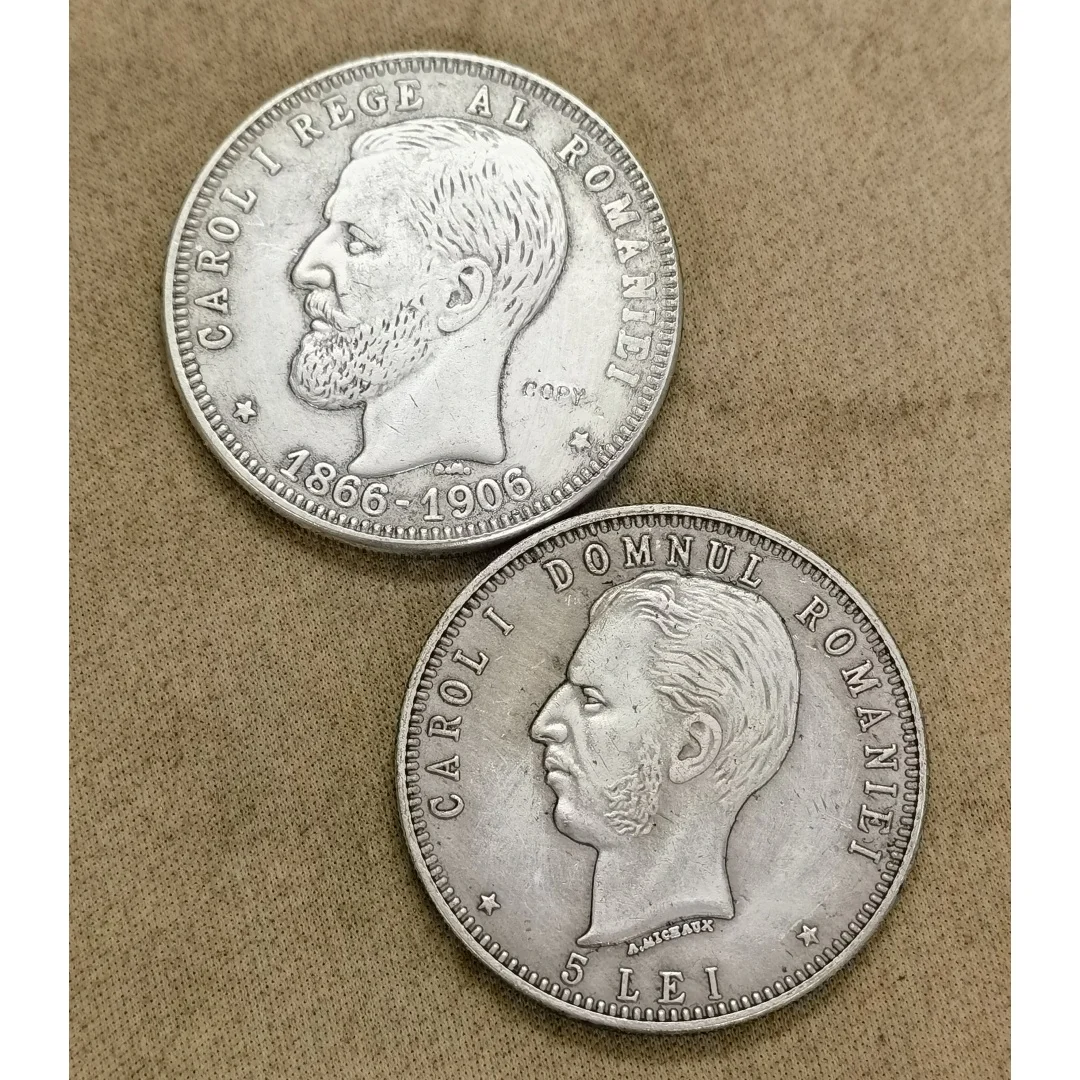 - Includes accurate inscriptions like “CAROL I REGE AL ROMANIEI” and “1866-1906,” with a beaded border around the edge enhancing the coin's finished appearance.