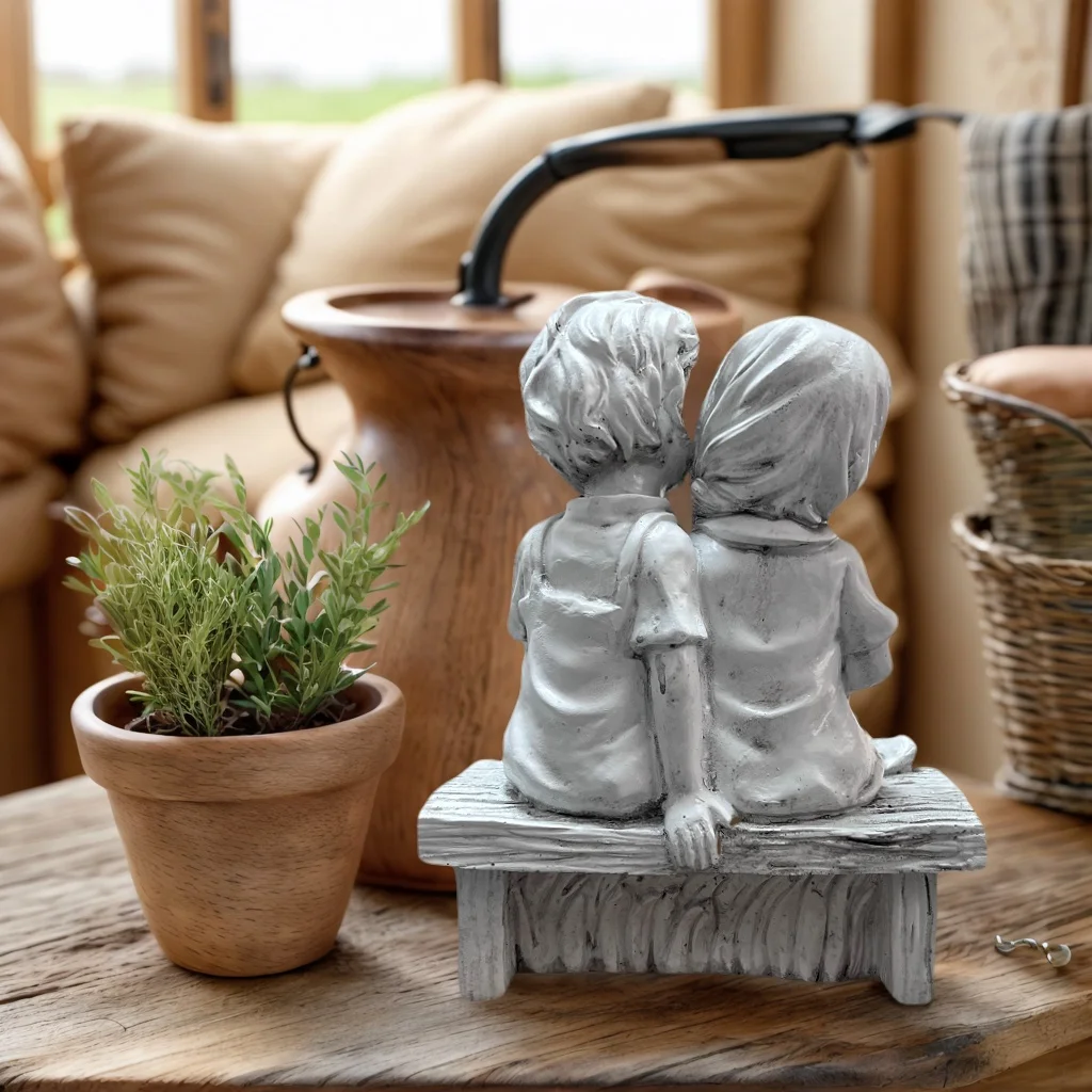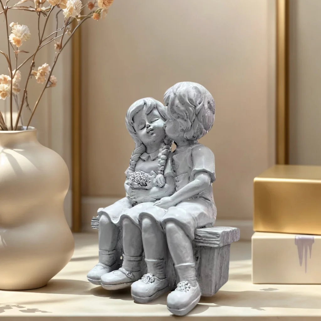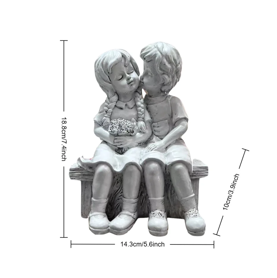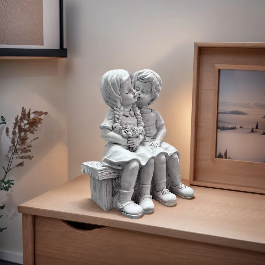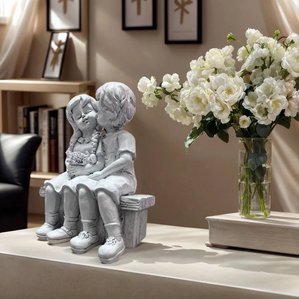 Bring a touch of romance to your space with this resin figurine depicting a tender scene between a boy and girl. Finished in a sleek “Ly-11” monochromatic tone, this modern decorative sculpture captures detailed facial expressions, hairstyles, and clothing folds, creating a heartfelt, minimalist aesthetic. Perfect for living rooms or gardens, it adds warmth and sentimentality to any interior or outdoor setting. Made from high-quality resin without chemical additives, this non-customized piece is ideal for wedding or festival décor, offering a timeless charm that invites you to imagine cherished moments of affection.