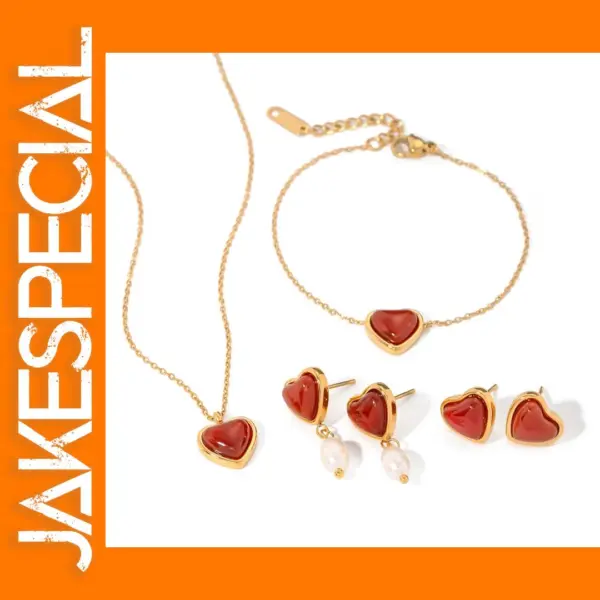 Indulge in the elegance of this Youthway Romantic Stainless Steel Red Onyx Love Bracelet, Necklace, and Earring Set. Perfectly designed for special occasions, especially for that unforgettable Valentine's Day, this jewelry set features a stunning heart shape pattern crafted from durable stainless steel, complemented by a captivating red onyx stone. Imagine wearing this exquisite set on a romantic evening or gifting it to someone special, capturing their heart with every detail. Its trendy style and fine craftsmanship make it the ideal choice for engagements or meaningful moments. Elevate your jewelry collection now and experience the joy of having this beautiful ensemble.