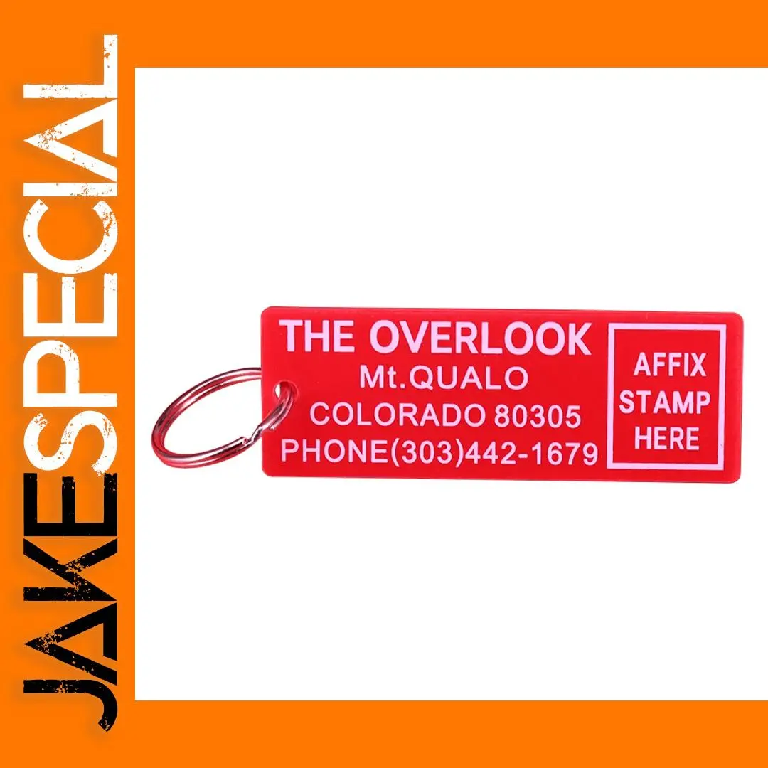 This beautifully crafted Room 237 keyring is inspired by Stanley Kubrick's iconic film, offering a striking accessory for enthusiasts. The keychain features a vibrant red color with smooth, shiny surfaces that catch the eye. Printed on both sides, it displays key details such as “THE OVERLOOK” and a fictional address, making it a conversation starter and a unique addition to your collection. The classic round shape and durable plastic material ensure it holds up over time while the attached silver metal ring provides practicality. Feel connected to the cinematic world every time you use this keyring and carry a piece of film history wherever you go.