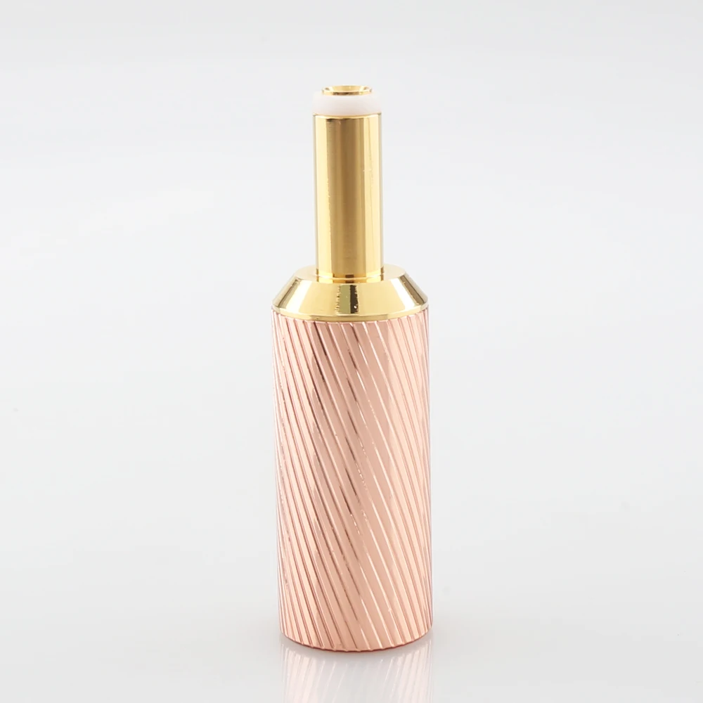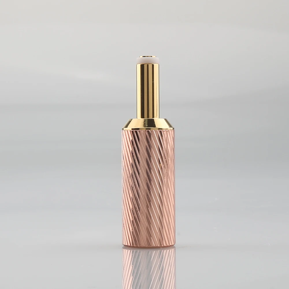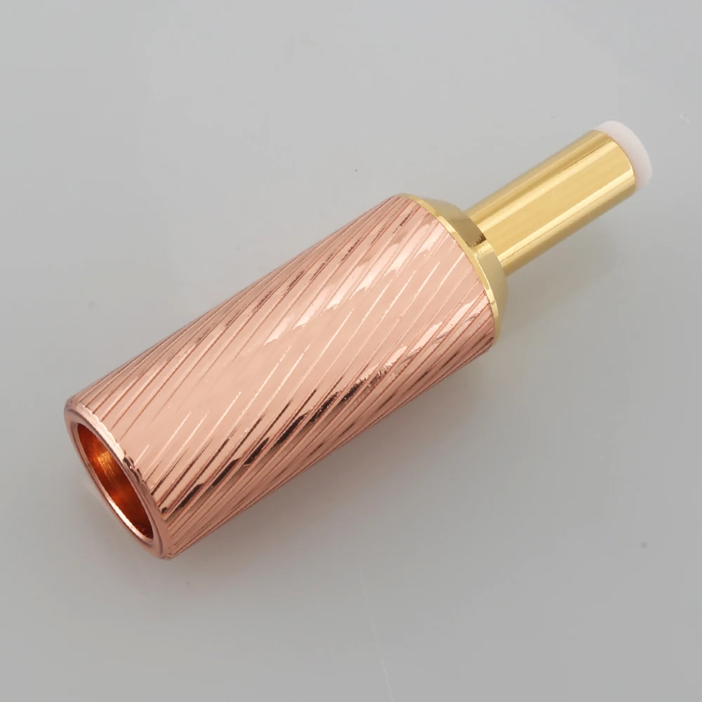 Imagine upgrading your electronic project or replacing your existing power connection with this stunning DC25 connector. Its cylindrical shape, textured with diagonal grooves, exudes sophistication and modern industrial style. The warm rose gold plating on the brass housing not only provides durability but also adds a touch of luxury to your setup. The smooth, gold-plated conductive pin, measuring 12.5mm in length, creates a shiny contrast against the textured body. With an 8.5mm cable entry hole, it comfortably fits larger cables. Designed for solder termination, this connector ensures a secure, lasting connection. Whether building a new device or replacing an old component, this product combines function and style effortlessly.