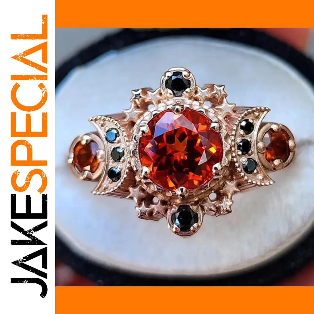 Imagine elevating your style with this eye-catching rose gold cocktail ring, featuring a broad 8mm surface with a mesmerizing geometric pattern. The intricate design includes interconnected shapes, adorned with bead-like details along the edges, adding a luxurious touch. The focal point is a vibrant, faceted reddish-orange zircon stone that captures light brilliantly, creating a fiery sparkle perfect for parties or special occasions. Surrounding the central gemstone are smaller black, blue, and amber stones, enhancing its celestial-inspired aesthetic. Made from zinc alloy with a prong setting and a glossy finish, this adjustable ring offers both comfort and elegance. It’s a bold, fashionable statement piece you won't want to miss, perfect for expressing your unique style.