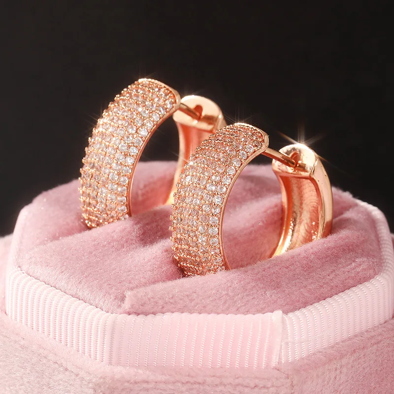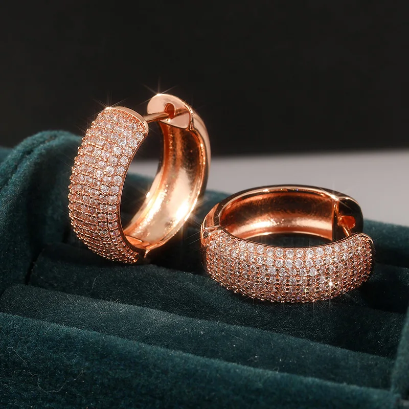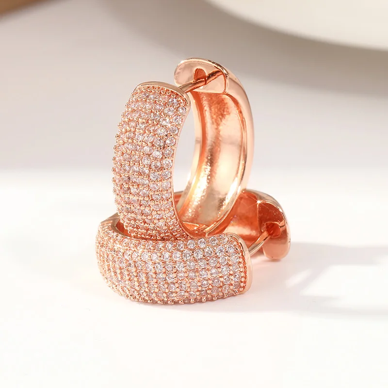 Elevate your jewelry collection with these luxurious rose gold hoop earrings today. Their eye-catching design, combined with splendid craftsmanship, guarantees you'll look stunning for any event. Whether for a casual outing or a special celebration, these earrings provide the perfect finishing touch to your outfit. Invest in a timeless accessory that blends modern trendiness with classic elegance. Place your order now and enjoy adding a high-end, fashionable piece to your personal collection or retail inventory. Experience the beauty and allure of these exquisite earrings firsthand!