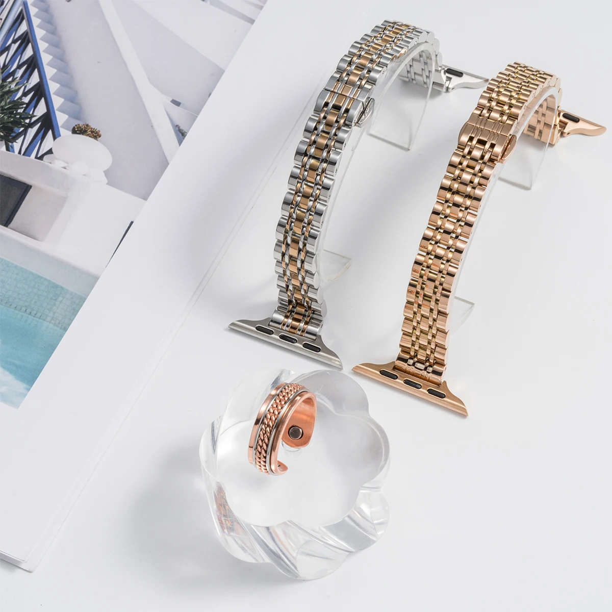 Rose Gold Stainless Steel Apple Watch Band for Series 7-10