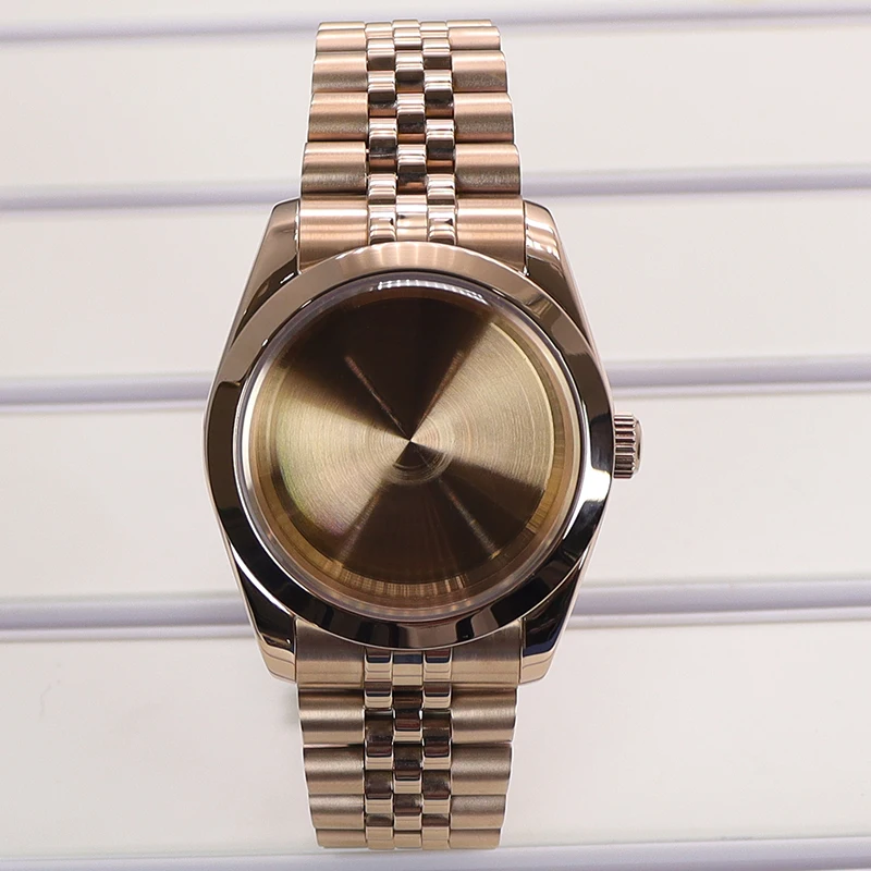 Step into sophistication with this beautifully crafted rose gold watch case and bracelet set by Fanya Losch. Designed to add a luxurious touch to your wrist, this set features a polished stainless steel surface with a shiny, reflective finish that exudes modern elegance. Its smooth, rounded edges enhance the sophisticated aesthetic, making it ideal for customizing and assembling stylish watches. The matching Jubilee-style bracelet, composed of small metallic segments, offers a classic look of refinement. Available in sizes of 36mm and 39mm, with precise 28.5mm dial compatibility, it’s perfect for creating a unique, high-end timepiece. The sleek design and high-quality materials promise durability, beauty, and an unmistakably luxurious feel.