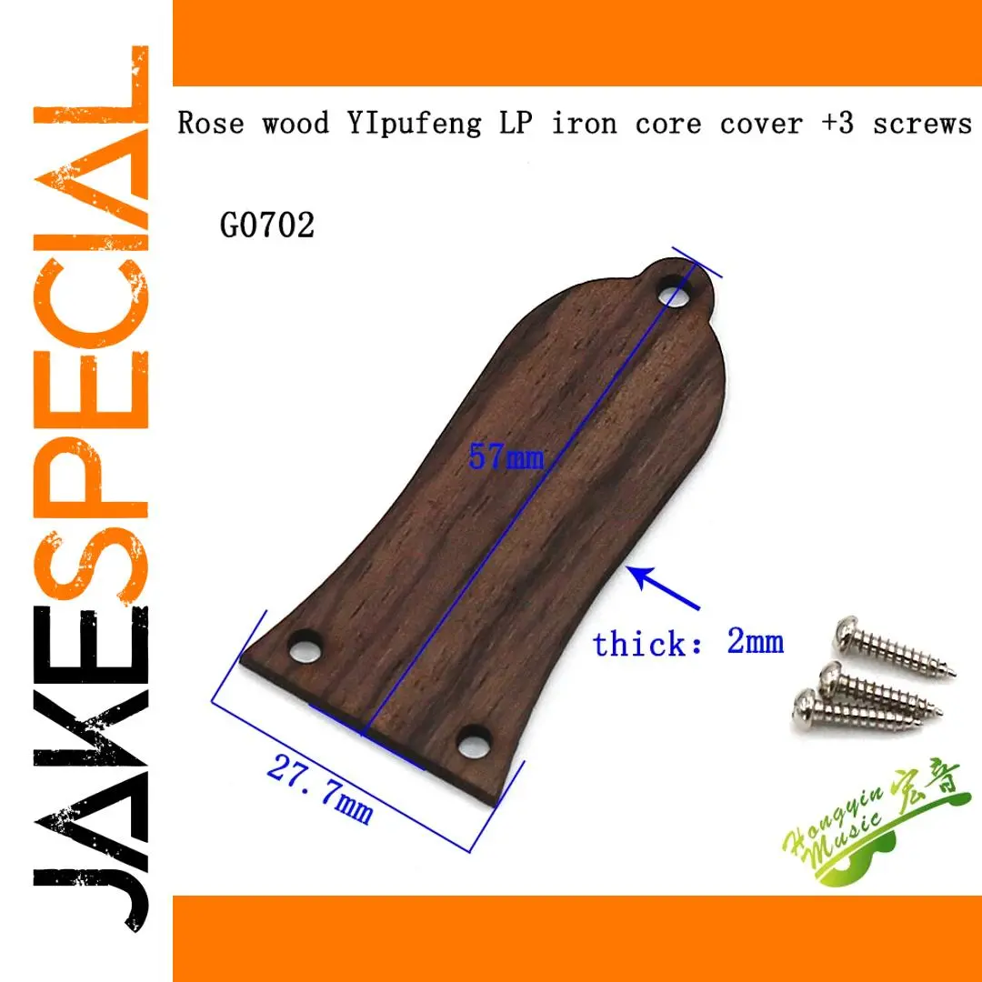 Elevate your electric guitar's aesthetic with this exquisite rosewood truss rod cover, designed for popular models like the Les Paul and SG. Its elegant, elongated bell shape and polished finish exude quality and craftsmanship, making it an attractive addition to your instrument. Measuring 57 mm in length, 27.7 mm in width, and 2 mm in thickness, it features two circular holes at the bottom for easy screw installation. With visible wood grain patterns, this dark brown cover radiates natural beauty and texture. Included are three shiny silver screws to ensure straightforward assembly, giving your guitar a professional touch that resonates with musicians.