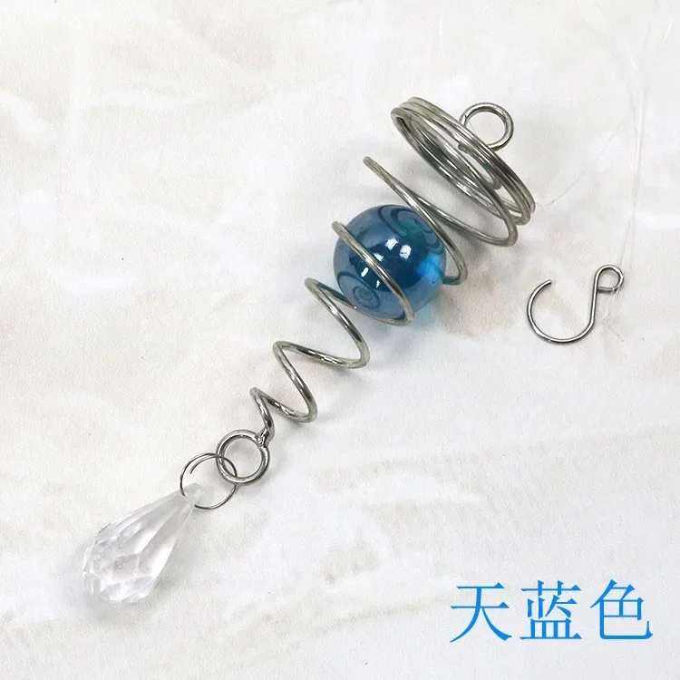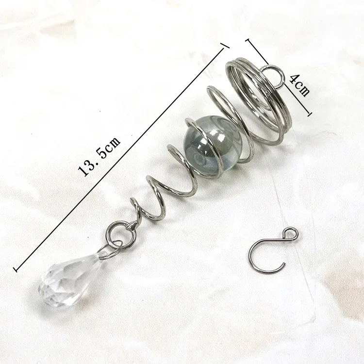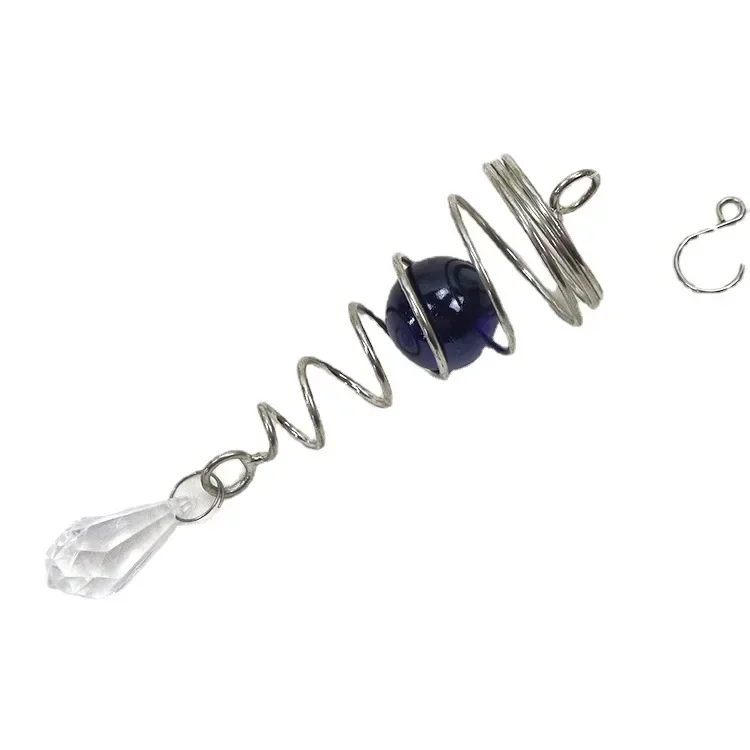 Imagine adding a touch of sophistication and tranquility to your outdoor space with this stunning wind chime. Crafted from durable metal, it features a sleek, metallic silver-colored spiral design that gently swirls, capturing light and movement beautifully. Suspended inside the spiral are eye-catching faceted glass orbs, available in vibrant sky blue and deep green with purple swirls, which reflect sunlight and create enchanting visual effects. At the bottom, a sparkling clear teardrop-shaped crystal pendulum enhances the overall elegance, shimmering with every breeze. Perfectly suited for garden beds, nurseries, windows, or beside trees, this wind chime offers both aesthetic beauty and peaceful ambiance, transforming your space into a serene retreat.