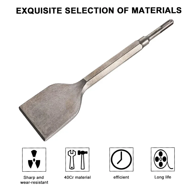 This round handle large chisel is perfect for construction and maintenance tasks, featuring durable alloy steel blades available in widths of 75mm (2.95″) and 120mm (4.72″). With a length of 280mm, each chisel undergoes full heat treatment to enhance core strength for maximum durability and extended life. Ideal for removing vinyl flooring, ceramic tile, ice, and more, the smooth-edged working points can be re-sharpened for longevity. The ergonomic round handle provides a comfortable grip for efficient use, making it an essential tool for heavy-duty applications.
